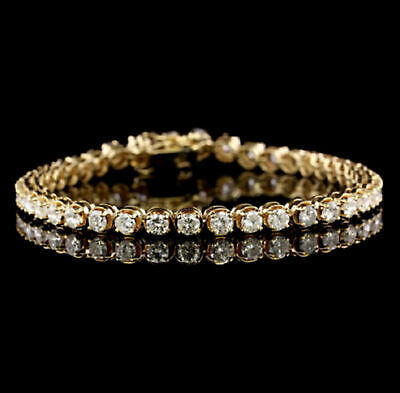 Bracelet Tennis Moissanite Simulé Coupe Ronde 8.00Ct Plaqué Or Jaune 14K 925