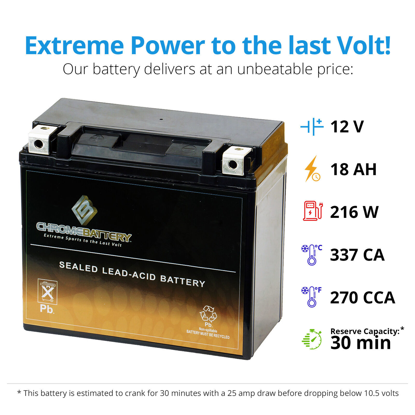 YTX20-BS sealed AGM batteries by Chrome Battery Battery are constructed with lead calcium alloy and absorbed glass mat technology that allows for a completely maintenance-free and high-performance operation. All YTX20-BS Chrome Battery Battery brand AGM batteries are manufactured with the highest quality materials and rigorously tested to ensure safety, OEM compatibility, effectiveness and optimal performance.