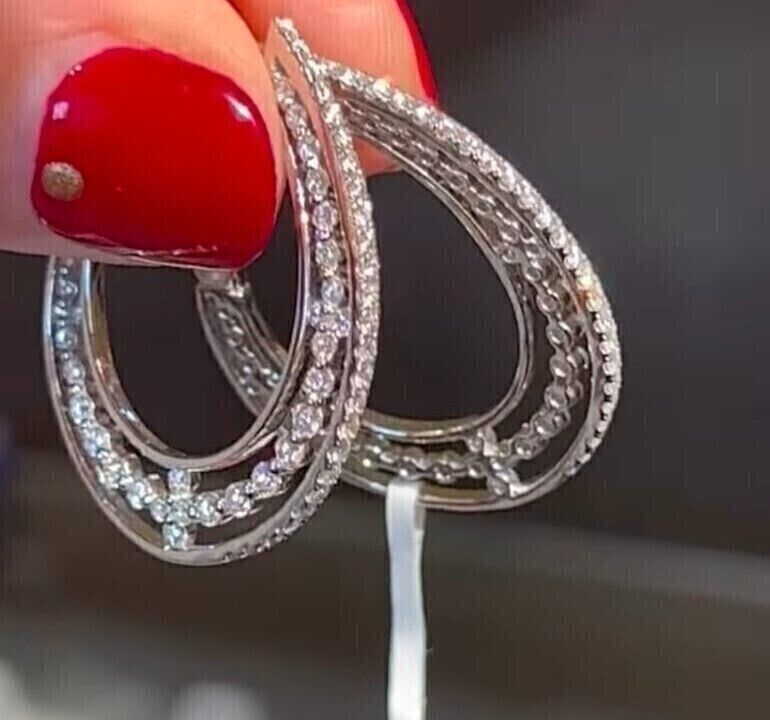 Aretes De Aro Huggie De Zirconia Cúbica De Corte Redondo De 1.50 Ct...