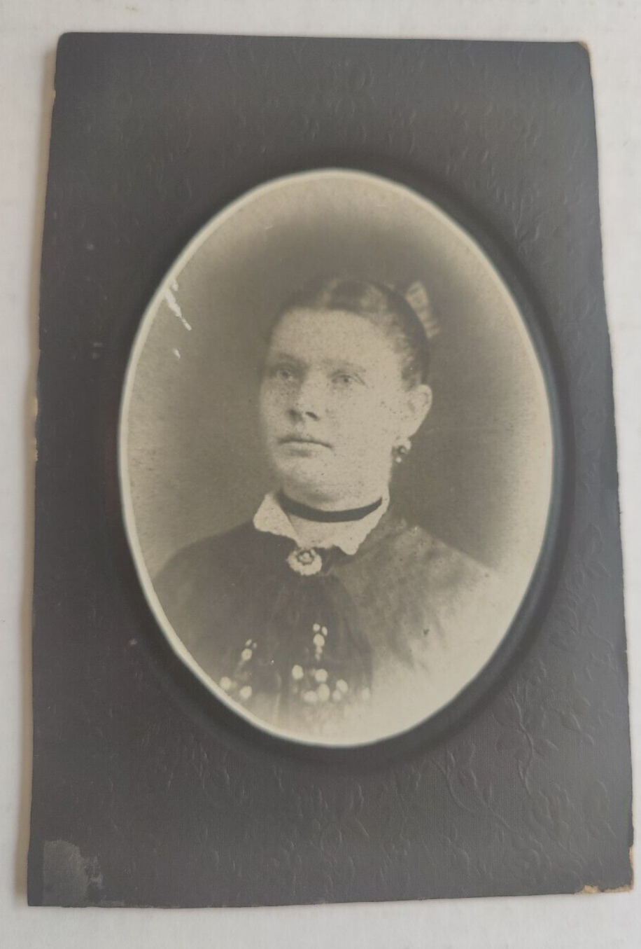 Vintage Cabinet Card Portrait of Woman in Black Dress with Jewelry
