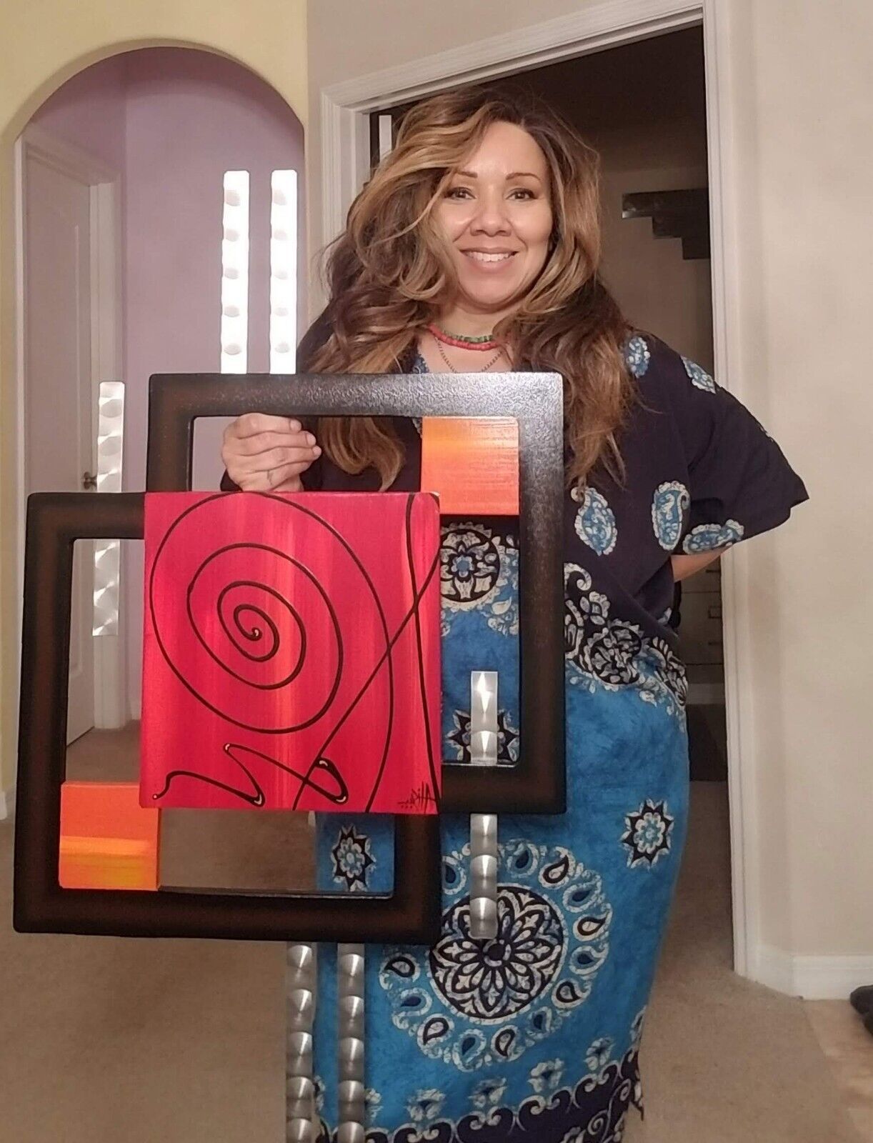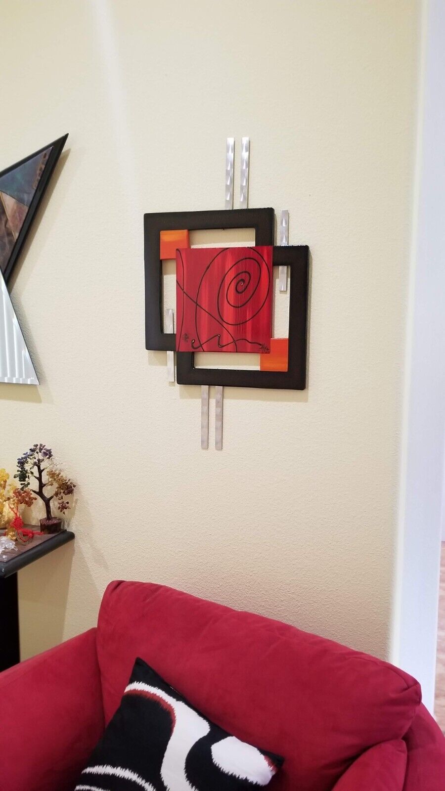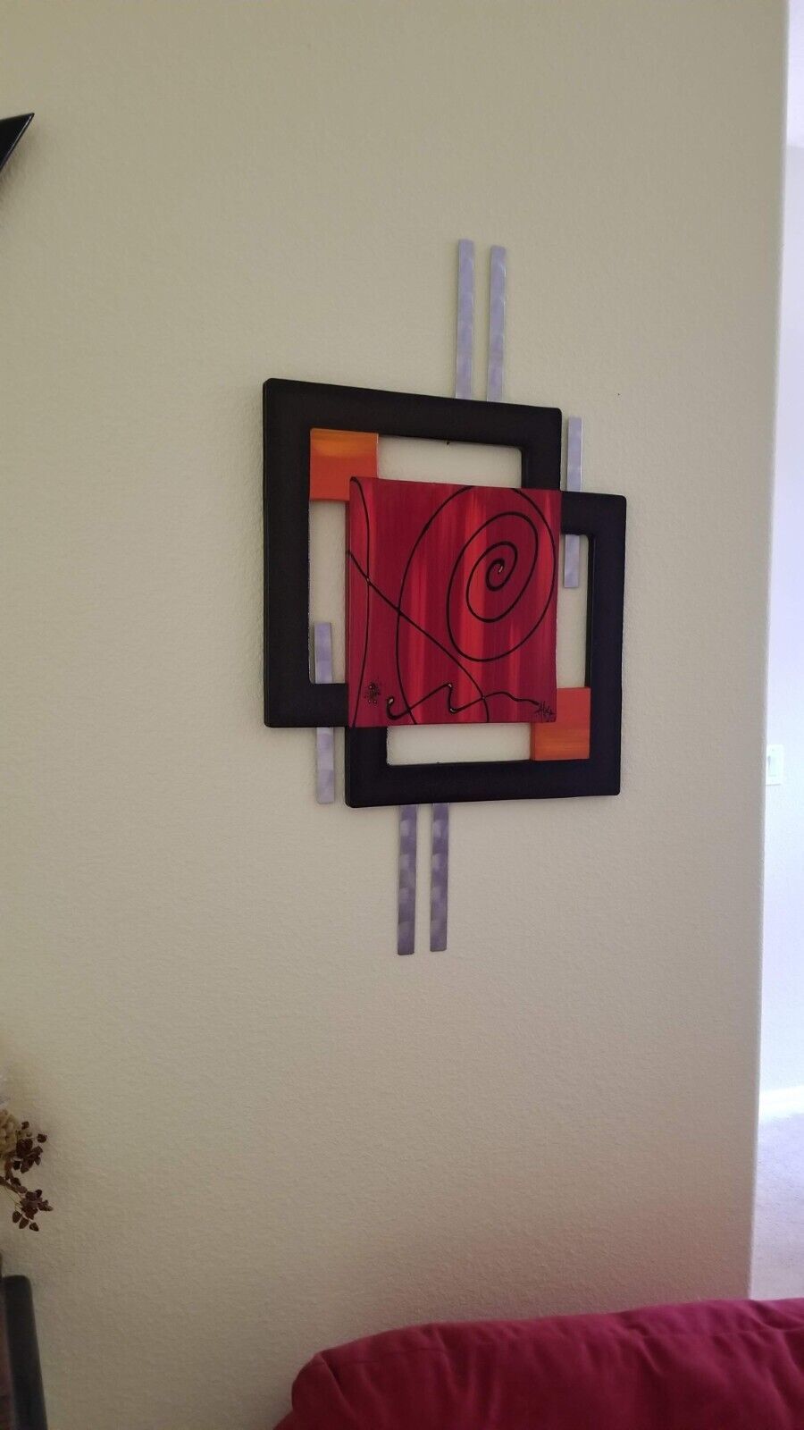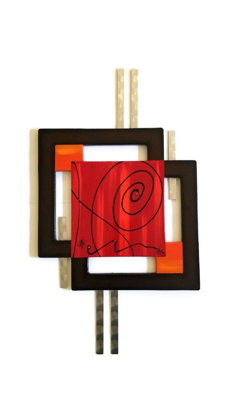Beautifully crafted. Red Orange brown Swirl brown Square Wall hanging