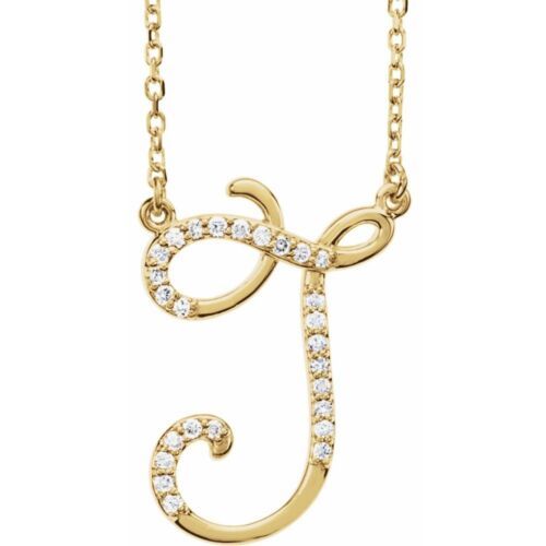 Precious Stars Unisex 14K Yellow Gold 1/10CTW White Diamond J Pendant Necklace