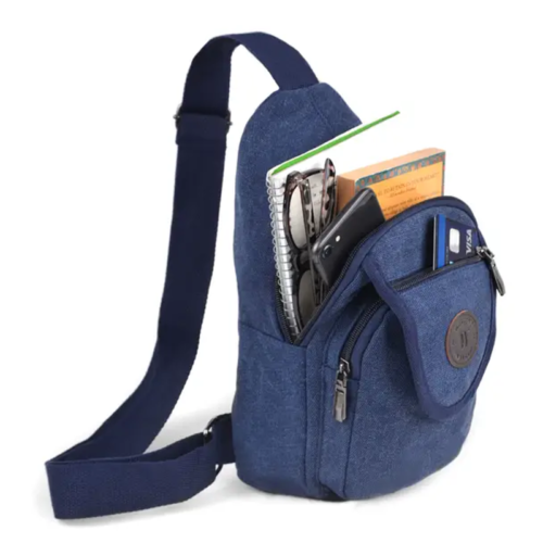 Navy Crossbody Sling Canvas Bag with Adjustable Strap