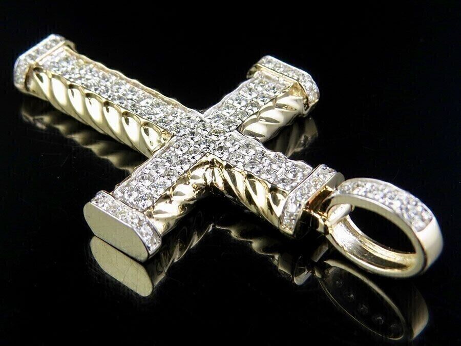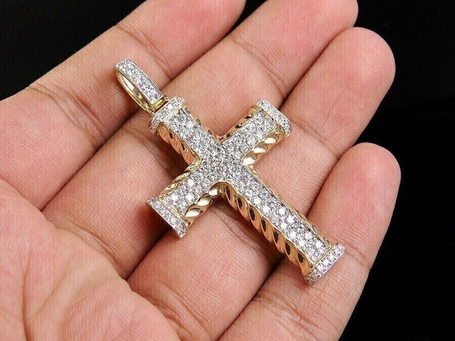 2,00 CT runder Moissanit-Anhänger in Kreuzform, 14 Karat Gelbgold vergoldet