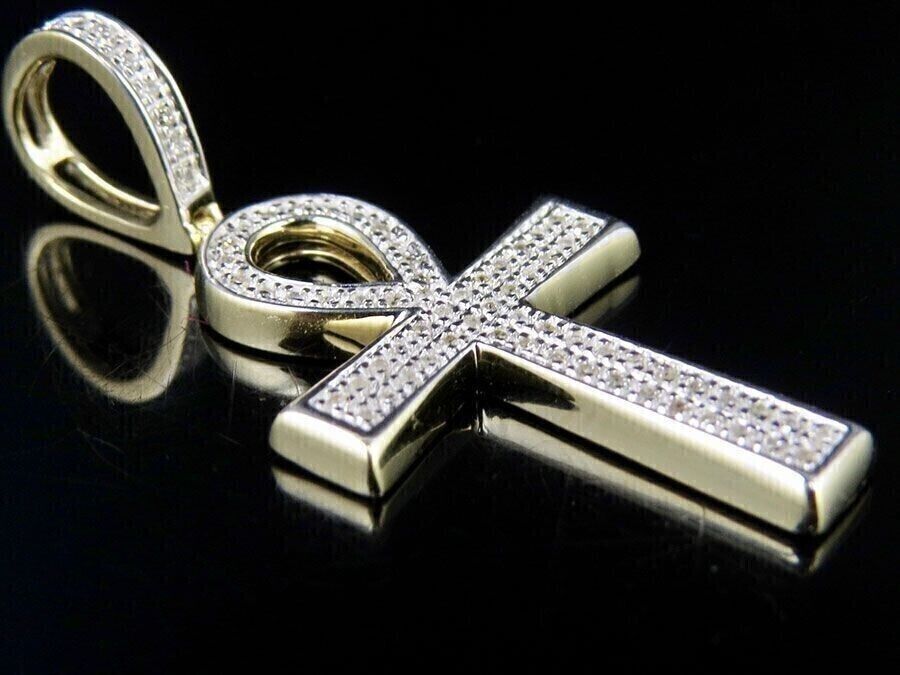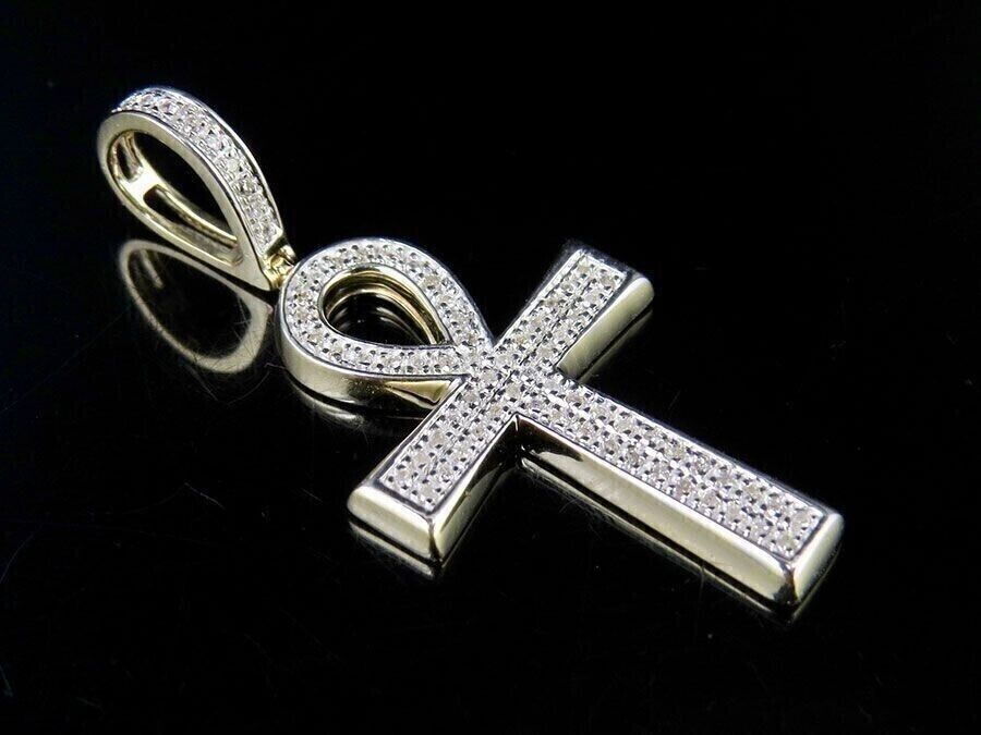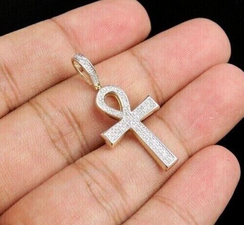 2.00CT Round Cut Moissanite Ankh Beautiful Cross Pendant 14K Yellow Gold Plated