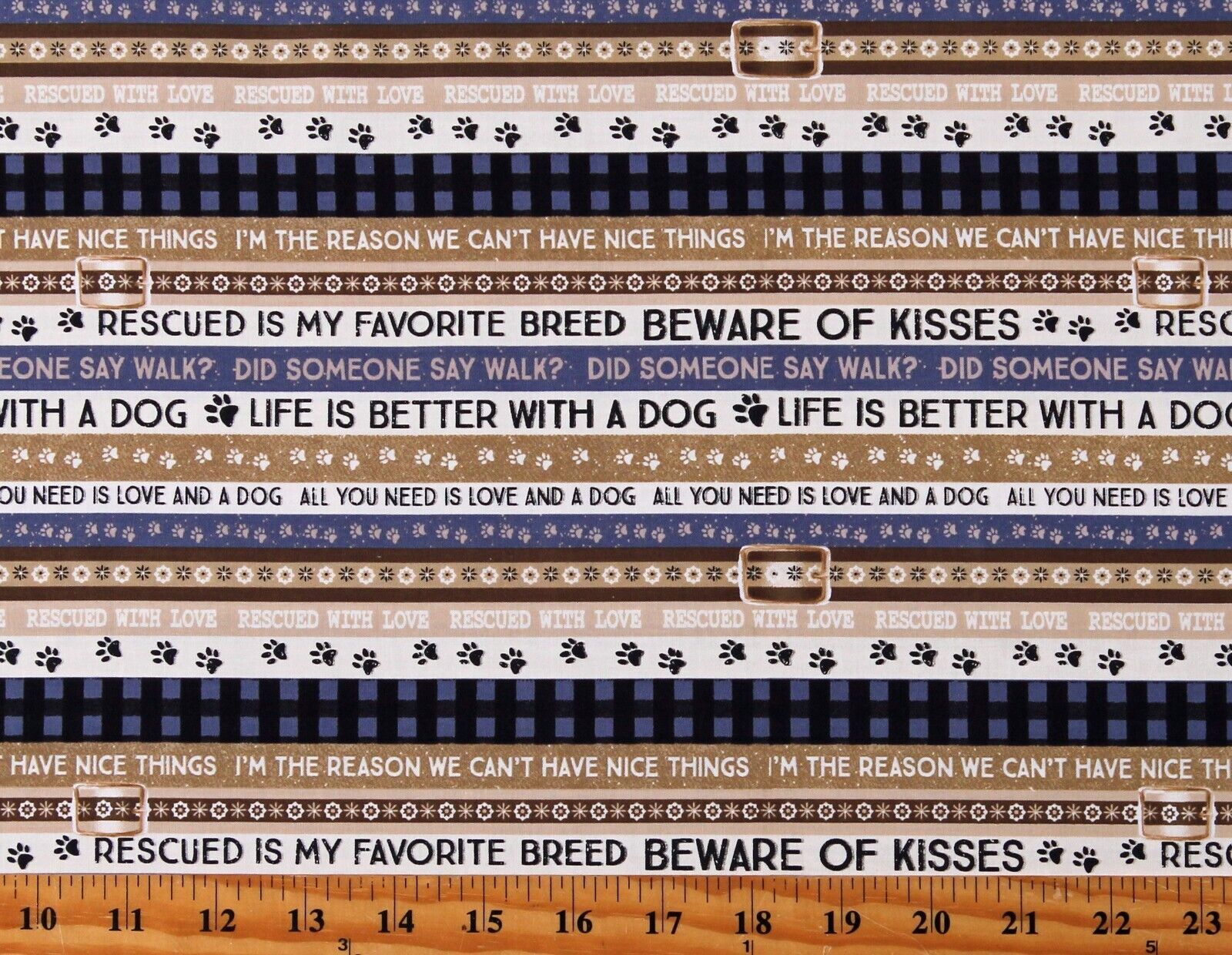 Cotton A Dog's Life Sayings Phrases Words Dogs Pets Animals Khaki Cotton Fabric Print by the Yard (Y3364-12)