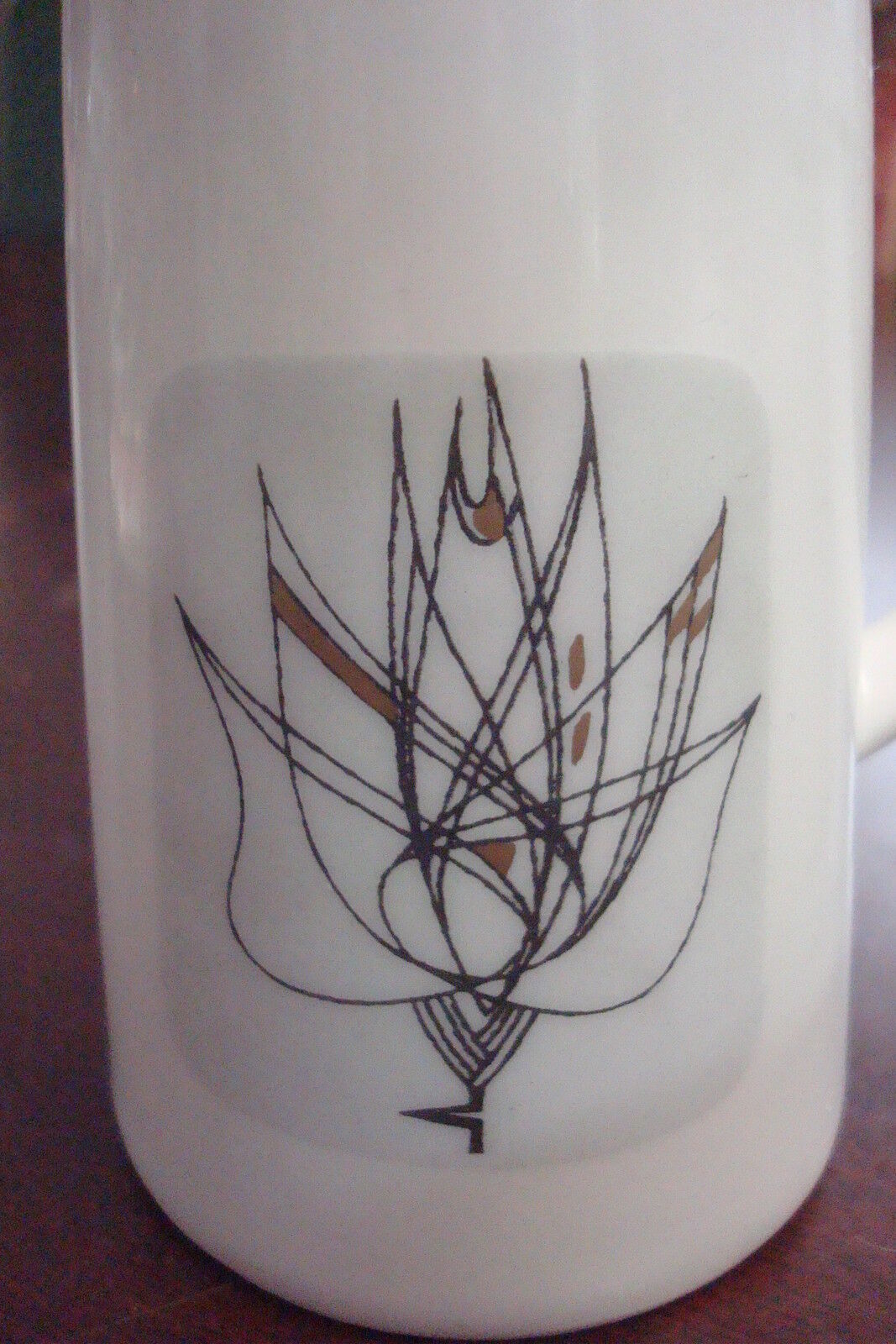 EPIAG -Bohemia- Czechoslovakia- DALLWITZ - PROESCHOLD Co, coffee set 6 pcs. Creamer, covered sugar and 4 coffee cups. creamer is 4 1/4" tall by 3 3/4" spout to handle, no cover, sugar is 4" tall by 3 1/2" diam and cups are 2" tall by 2 1/2" diam, very good condition, light surface scratches commensurate with age [760A]]