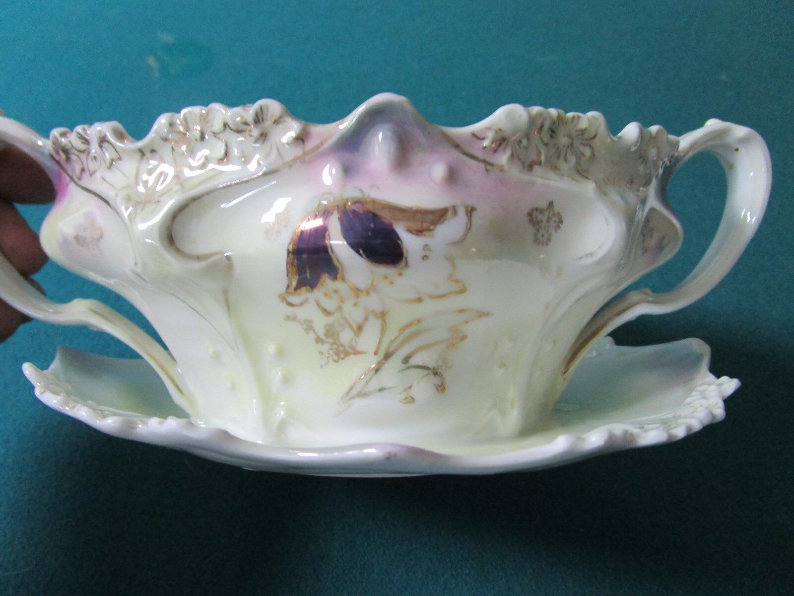 RS Prussia 2 handles gravy boat with underplate PURPLE GOLD