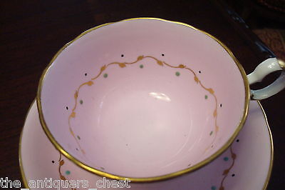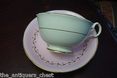 Royal Grafton England Antique footed cup and saucer, pink and gold[a*5-b2]