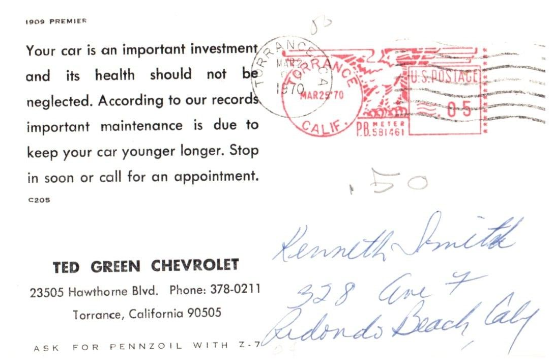 !909 Premier Car Postcard Posted 1970