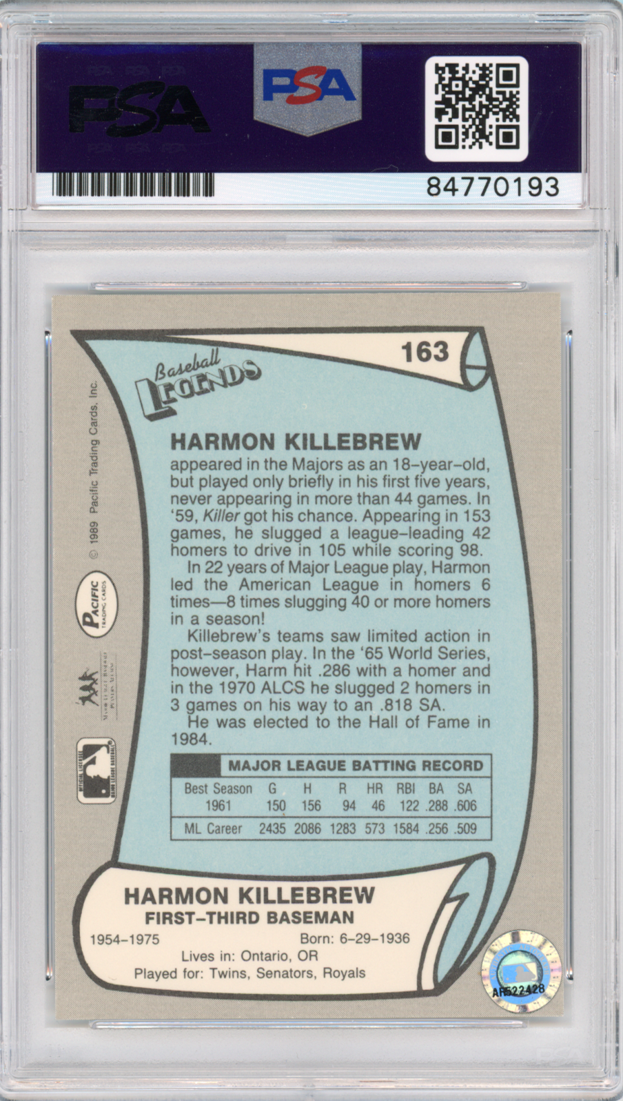 1989 Pacific Harmon Killebrew Signed COA PSA 9 Minnesota Twins