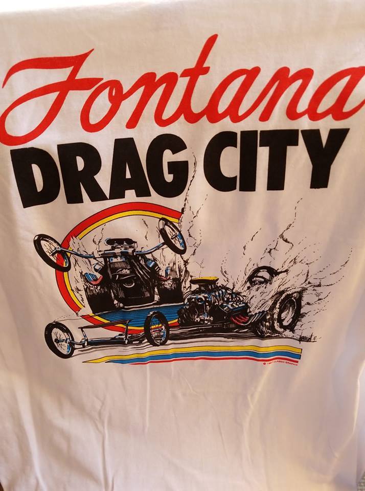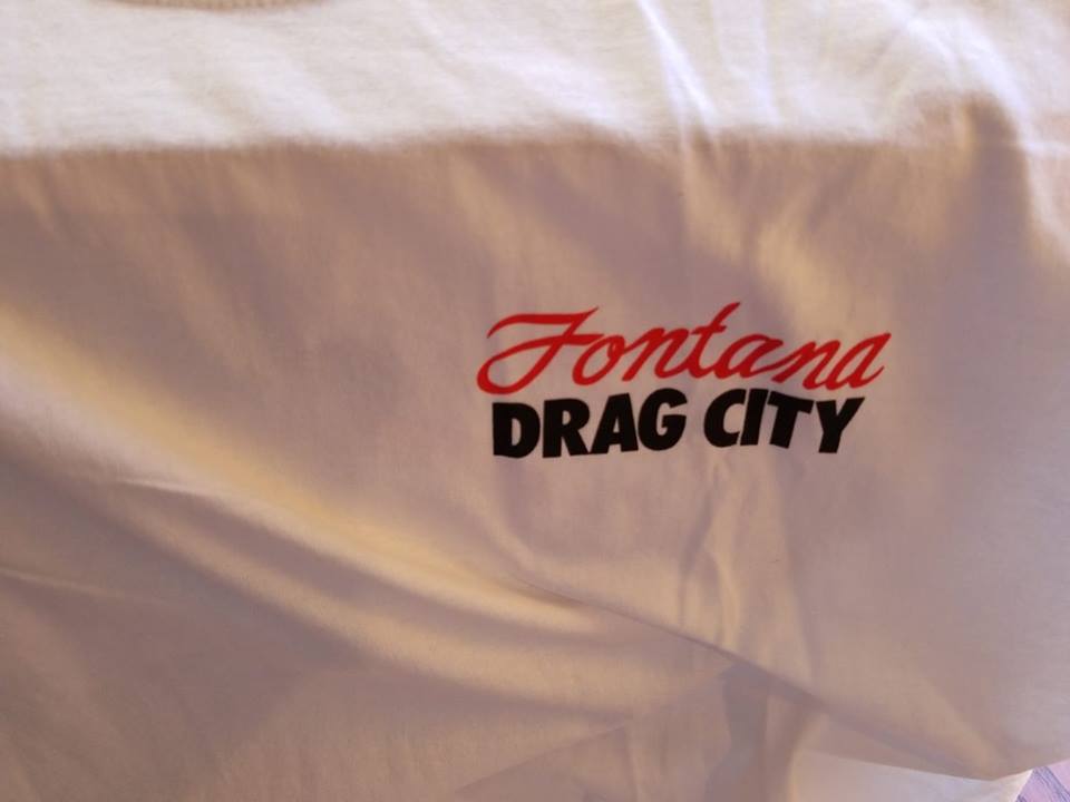 OLD VTG Fontana Drag City in southern California on a new white two extra-large (2XL) tee shirt.