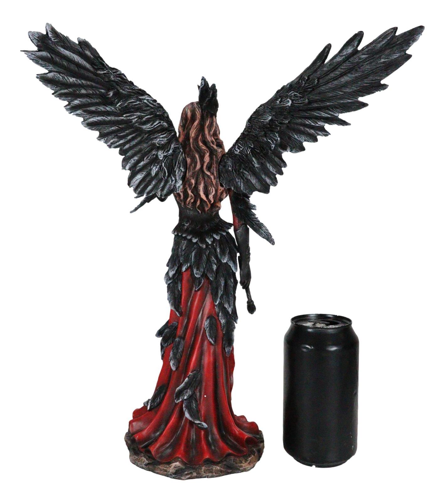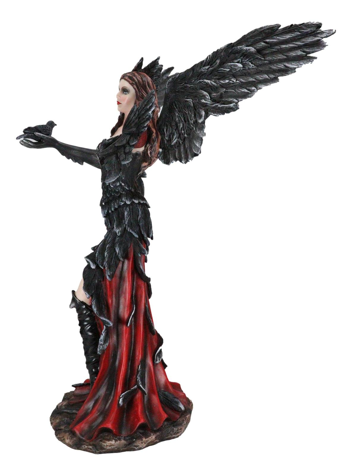 Gothic Raven Crow Trainer Angel Fairy In Black And Crimson Feather Gown Statue