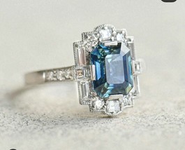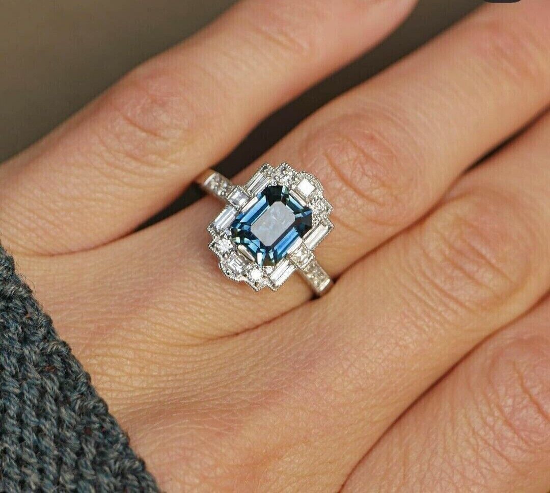 3Ct Emerald CZ London Blue Topaz Halo Fede and 50 similar items