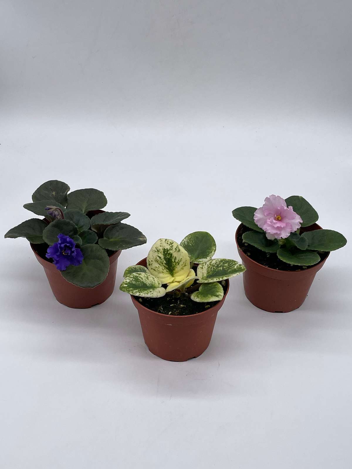 African Violet Assortment Set, 4 inch pots 3 Different African violets plants, Saintpaulia Variety Assorted, Unique Homegrown Exclusive