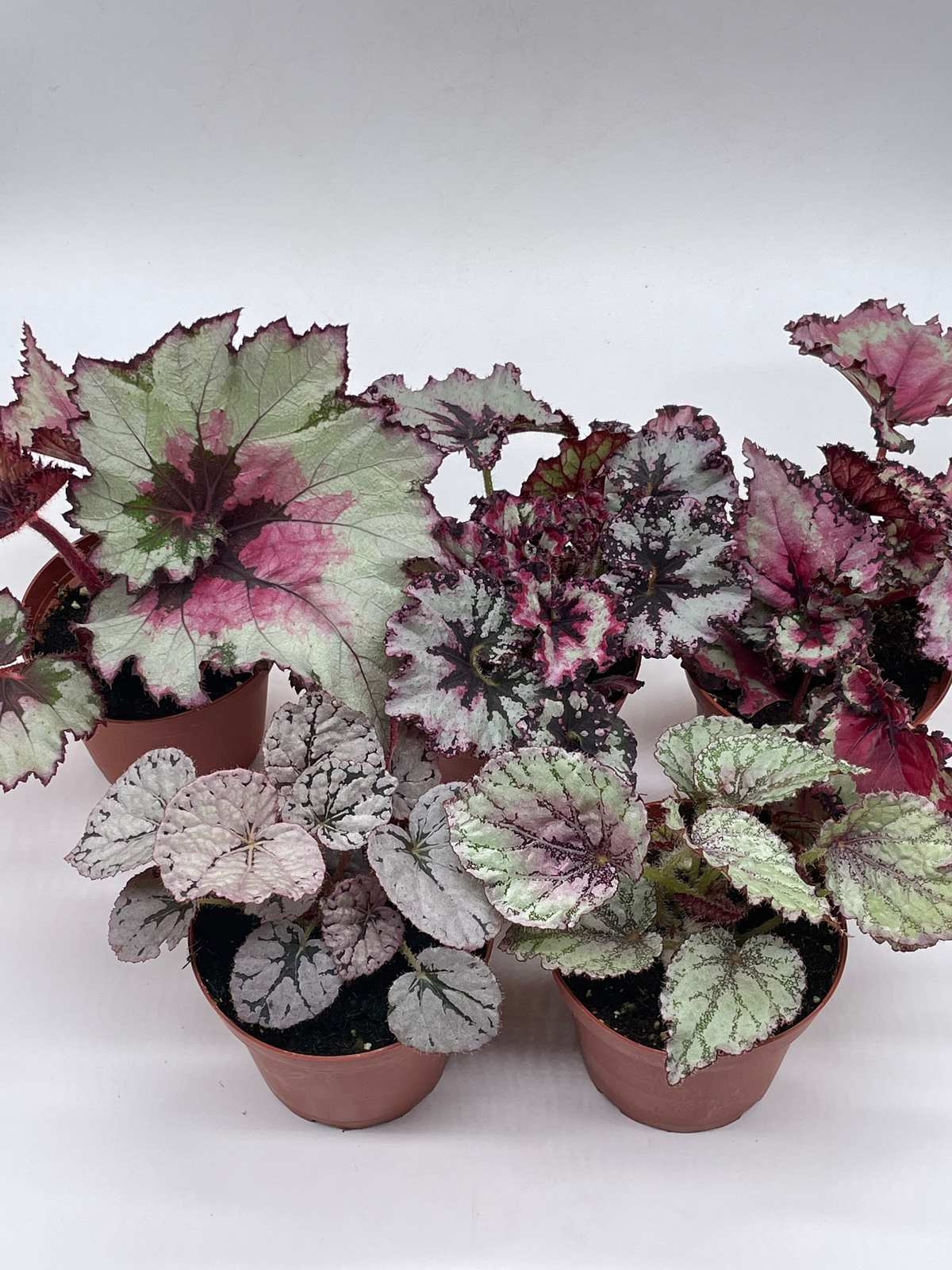 Begonia Rex Assortment, Cold Pastel Winter, 4 inch, Set of 5, Painted-Leaf Begonia, Unique Homegrown Exclusive, Variegated
