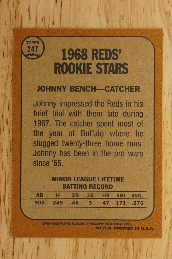 2001 Topps Archives Baseball Card #279 Reprint Issue Johnny Bench 68 #247