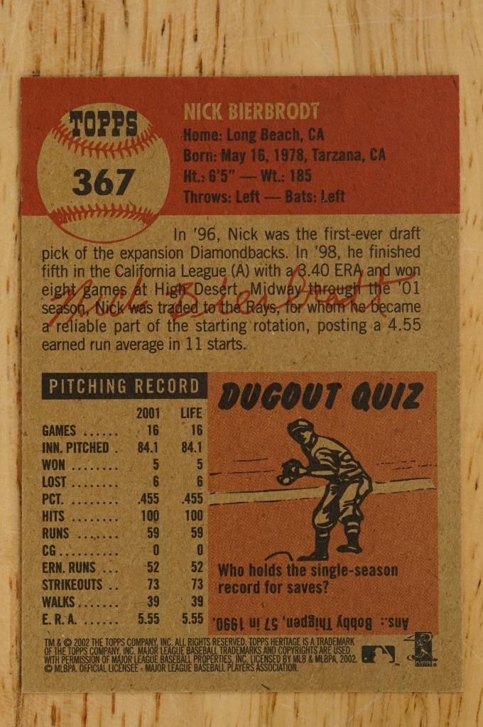 2002 Topps Heritage SP Short Print #367 Nick Bierbrodt Tampa Bay Devil Rays