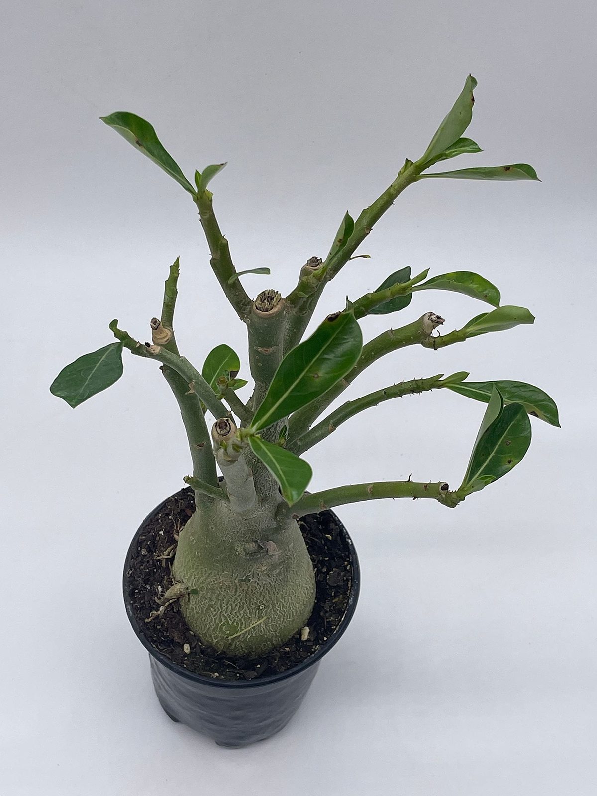 Adenium Desert Rose Plant spp., Desert Rose TreePictured in a 4 inch pot, but is ready for a 6 inch pot or greater.Plant(s) will be shipped with its pot and soil. May have red or pink flower, I can try my best to accommodate your requests in the personalization box but I can't guarantee any flower color for these.You will receive a plant similar to the ones in the photos. The plant will be carefully wrapped and nested in crinkle paper so that any shock to the packaging can be absorbed and remain safe. Our paper packaging allows the plants to breathe during their travel! Care instructions will be provided with plant. * * * Please be aware that once an order is in the hands of the mail carrier, it is out of our control if anything happens during shipment. If you are unsatisfied with how your order arrived, message us! We'll be happy to help you get this fixed right away!Please also note that plants may sometimes look a bit withered after being shipped. A little bit of sun and water will pucker these beauties right back up again! * * *PRO CARE TIPSMake sure to soak plant with water when soil is completely dry. Check if the soil is dry before each watering. Best tip is to stick your thumb in the soil and check for moisture.Direct sunlight for prolonged periods can cause sunburn (not good). Keep plants out of frost!QUESTIONS? Don't hesitate to message us! We typically respond within a few minutes!