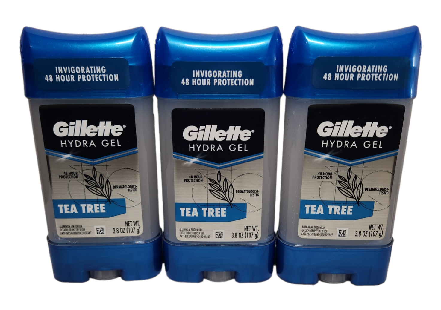 3x Gillette Men's Hydra Gel TEA TREE Deodorant Antiperspirant 3.8 oz Disc