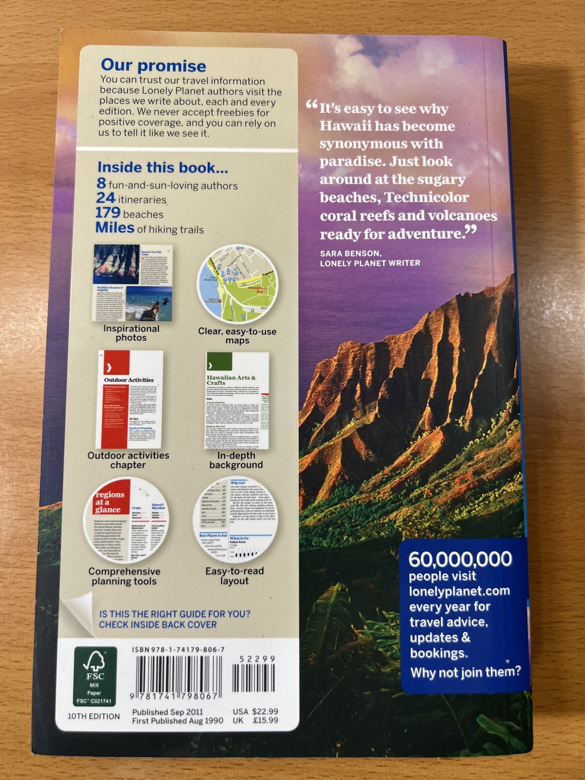 HAWAII by LONELY PLANET - softcover - 10th EDITION - REGIONAL GUIDE