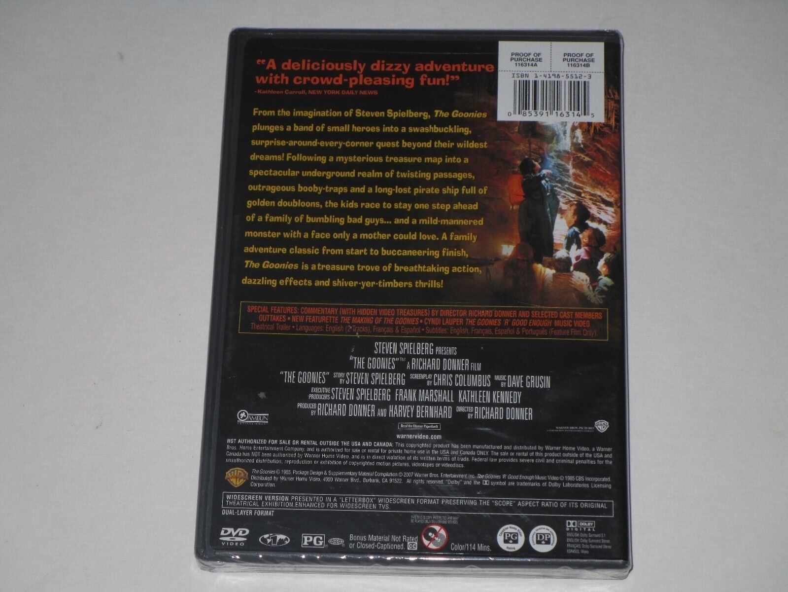 Up for sale is a BRAND NEW DVD of The Goonies. This movie plunges a band of small heroes into a swashbuckling, surprise around every corner quest beyond their wildest dreams!
