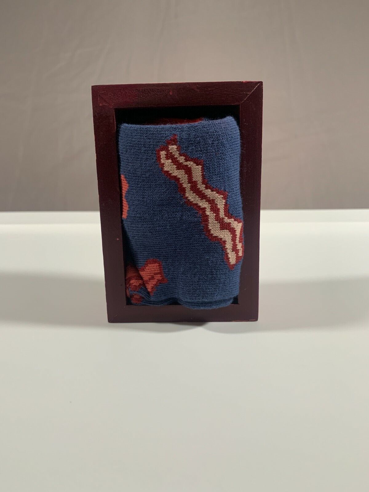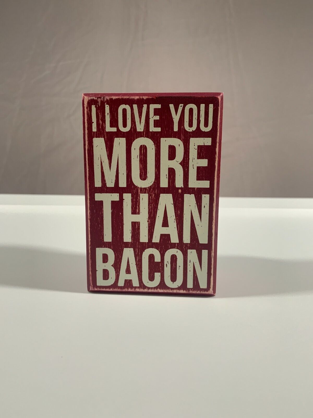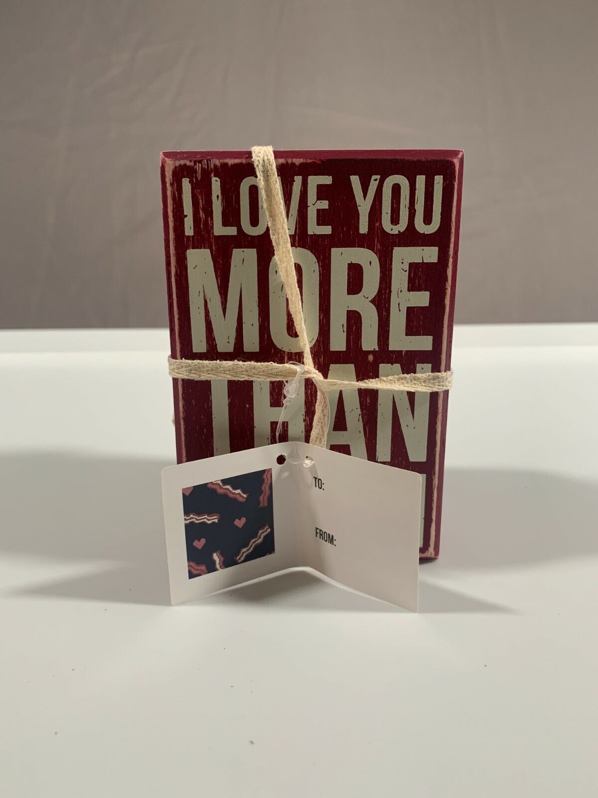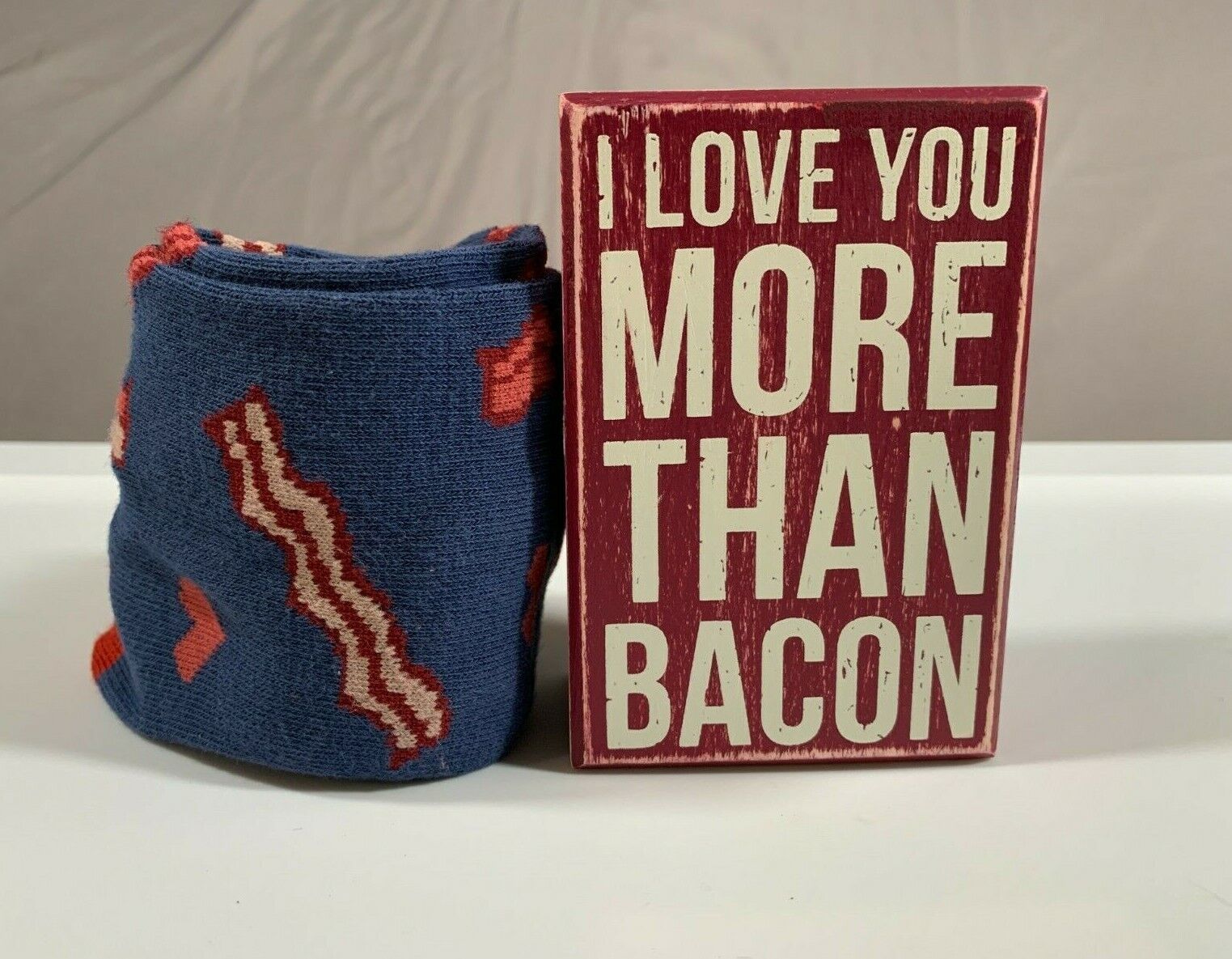 Wooden Box Sign & Socks Gift Set "Love You More Than Bacon" 5x3x2 NEW