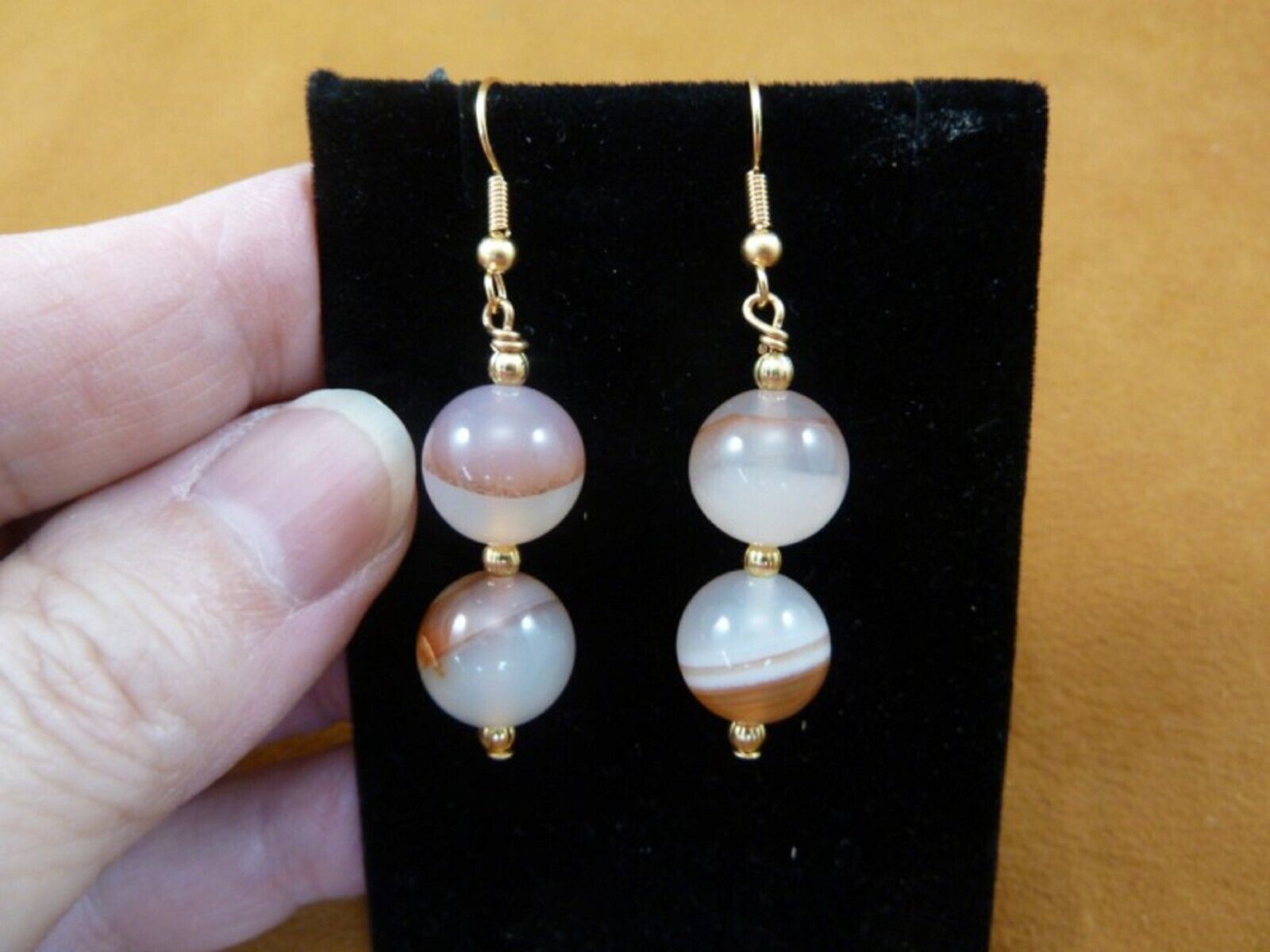AGATE EARRINGS (orange, brown, white banded coloration is natural)