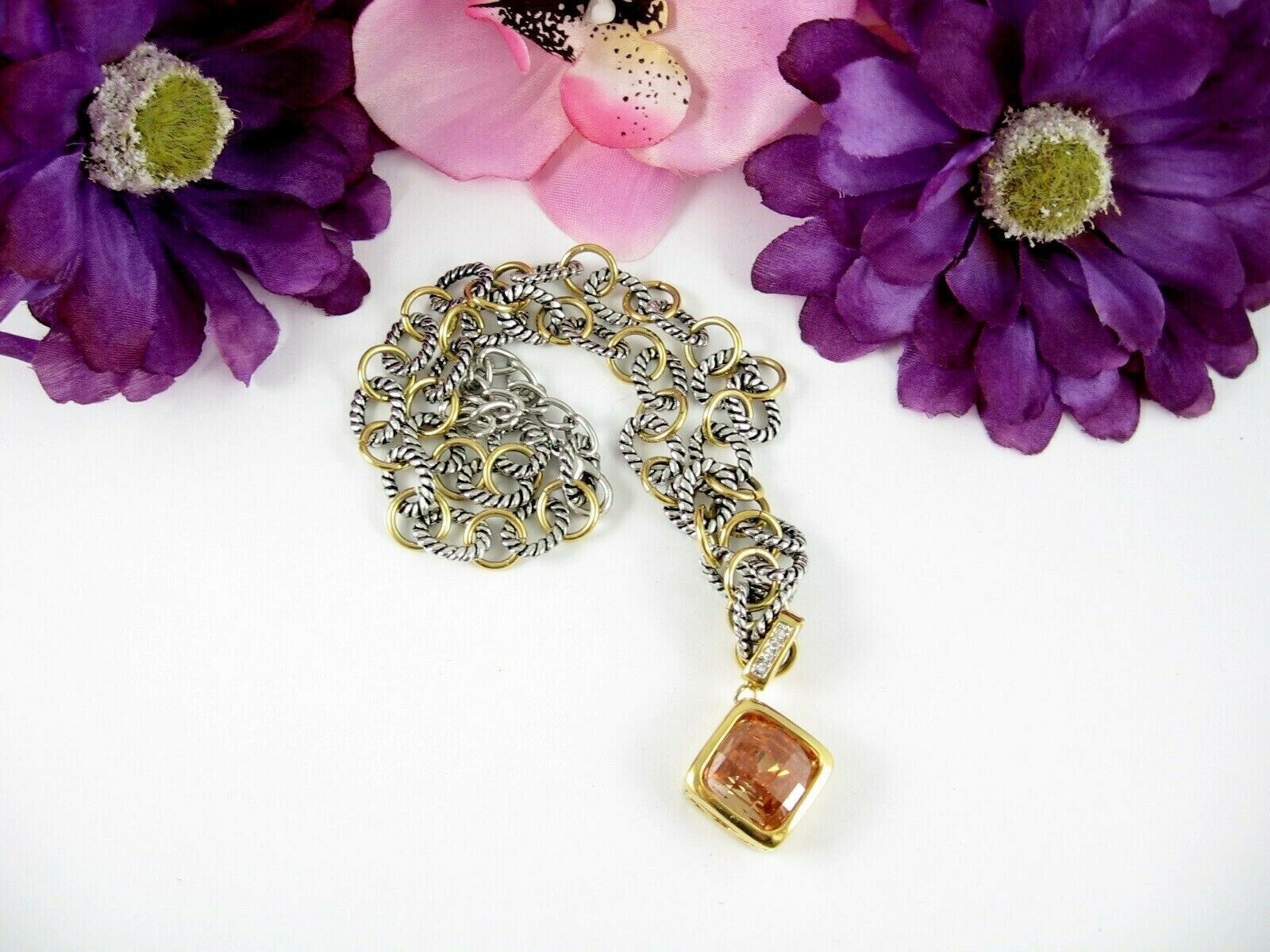 Big Orange Square Glass Pendant Necklace and 50 similar items