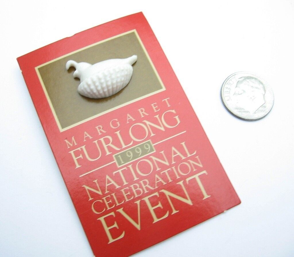MARGARET FURLONG NESTING QUAIL PIN 1999 Bisque Porcelain ON CARD Tie Tack