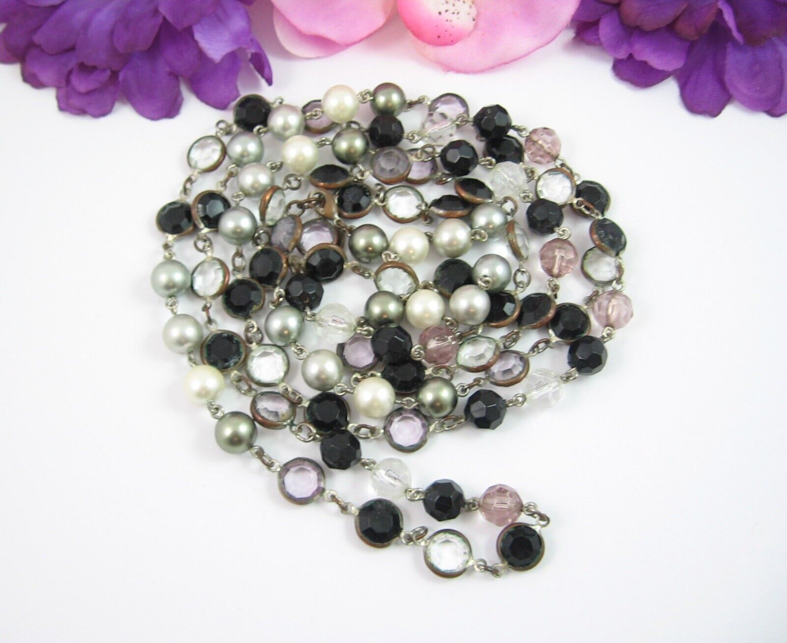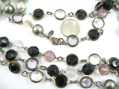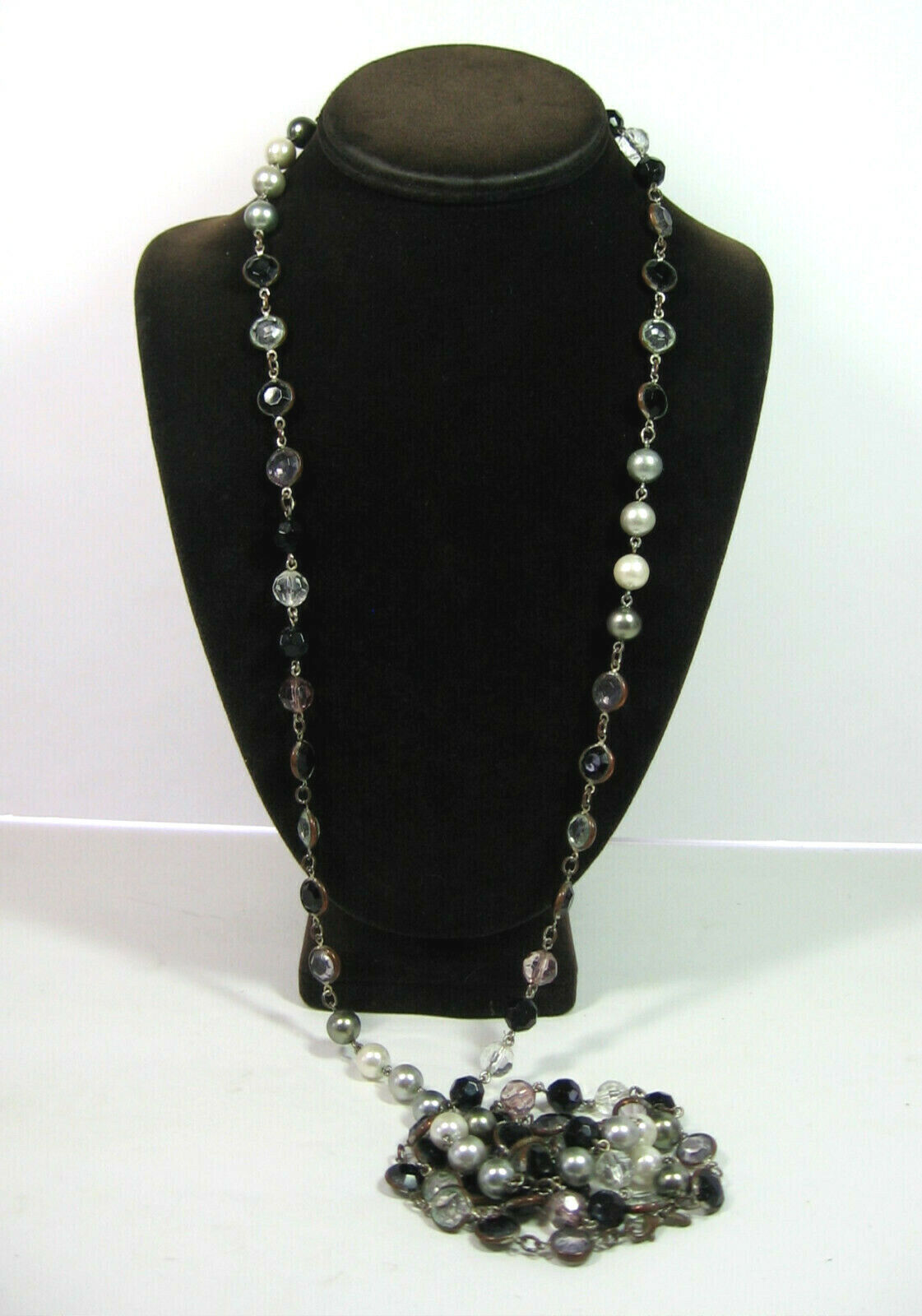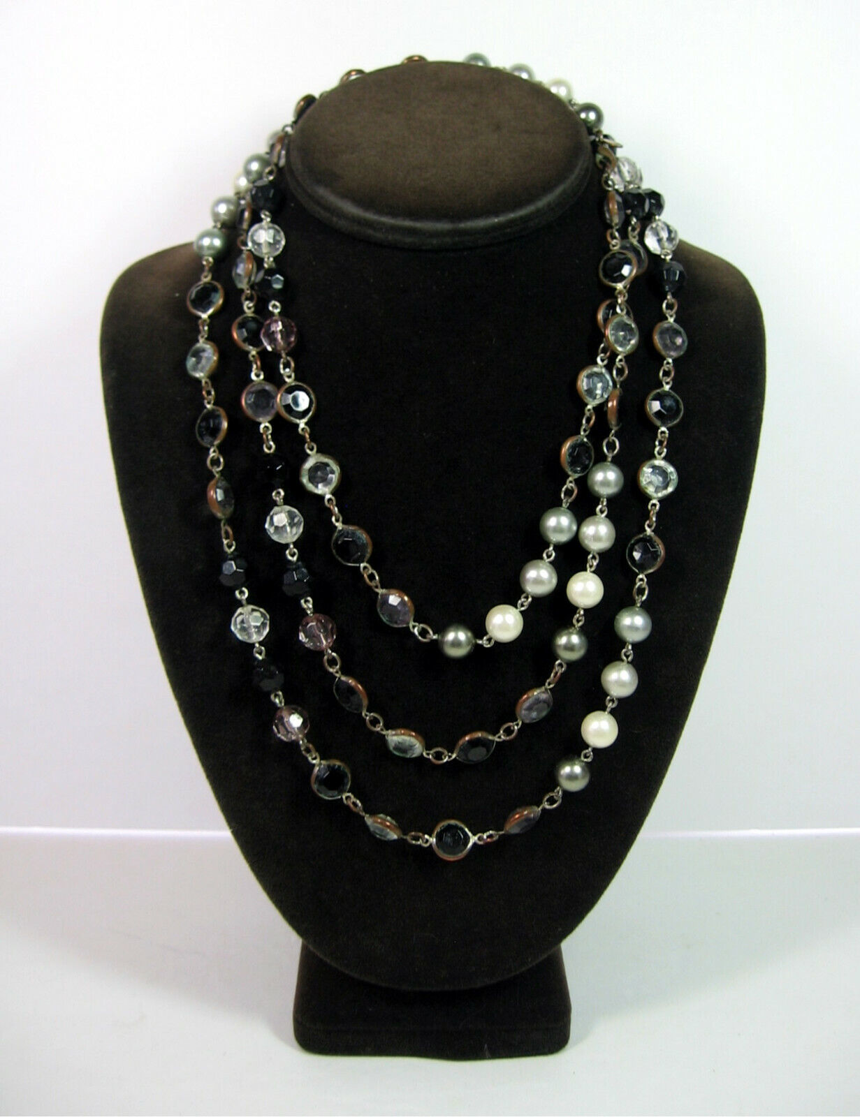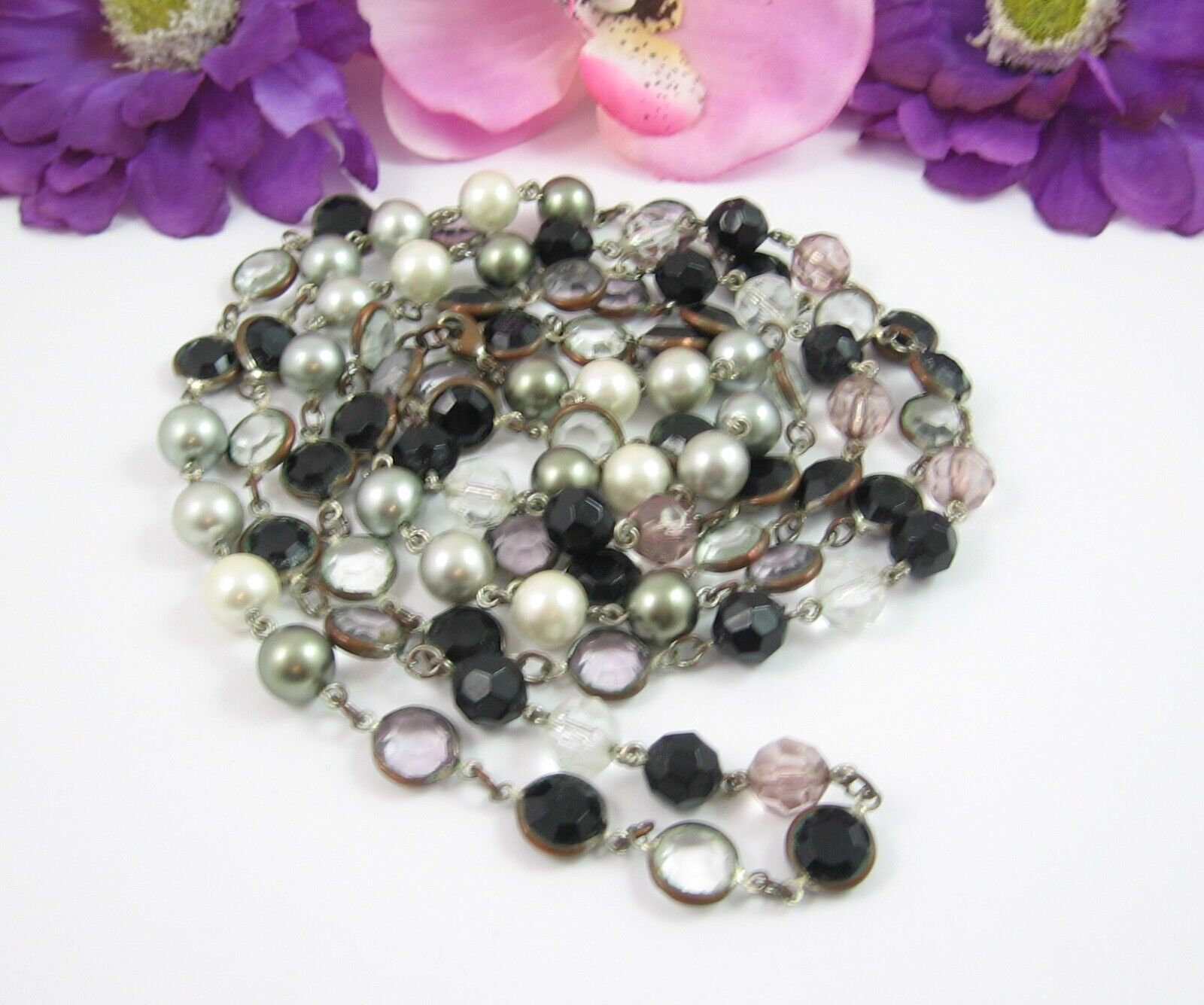 Premier Designs Jewelry CLEAR BLACK ROSE Beads Necklace Aspirin Round Beaded 60"