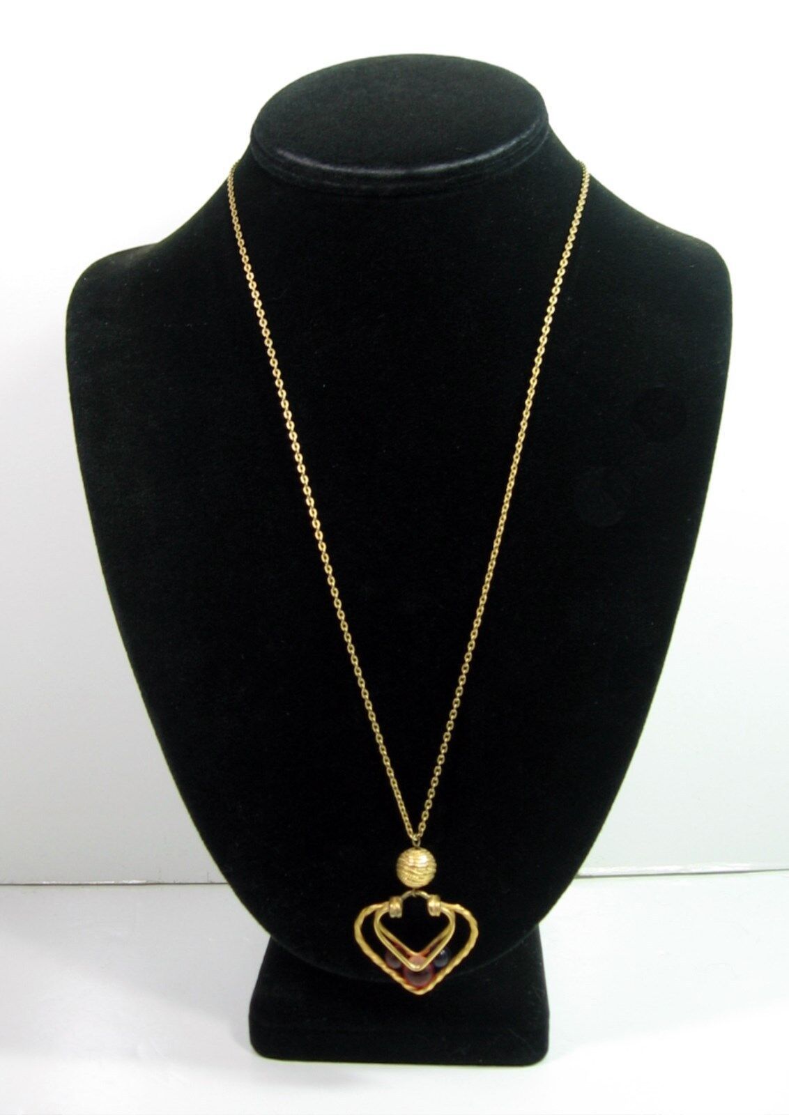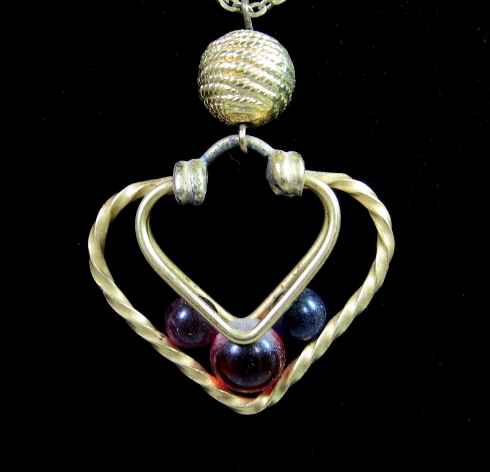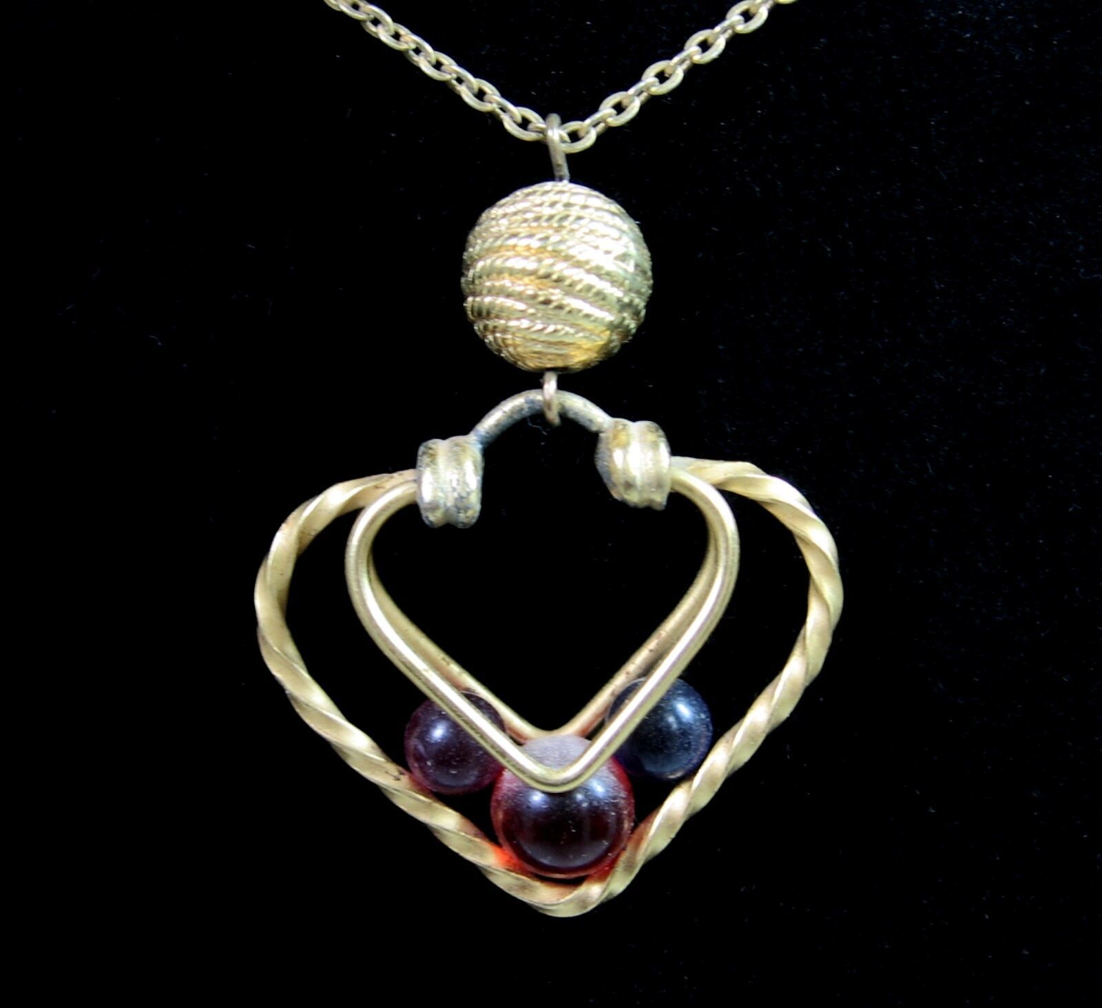 CAGED BEADS in HEART NECKLACE Vintage Pendant Goldtone Valentine's Day LC Signed