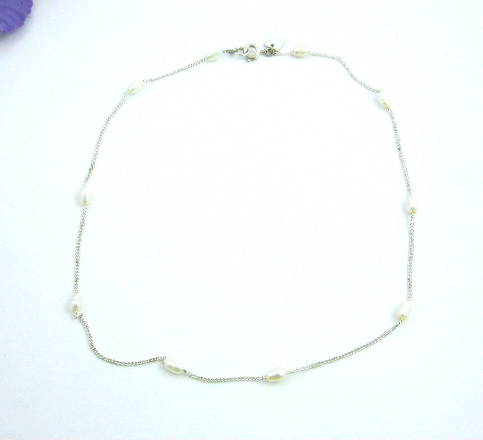 Nine West FRESH WATER PEARLS Delicate NECKLACE Vintage Silvertone 16" Choker