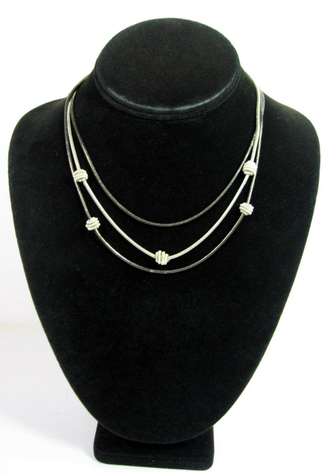 TRIPLE Strand TWO Tone KNOTTED NECKLACE Vintage Gunmetal Silvertone w/ TAG 15"