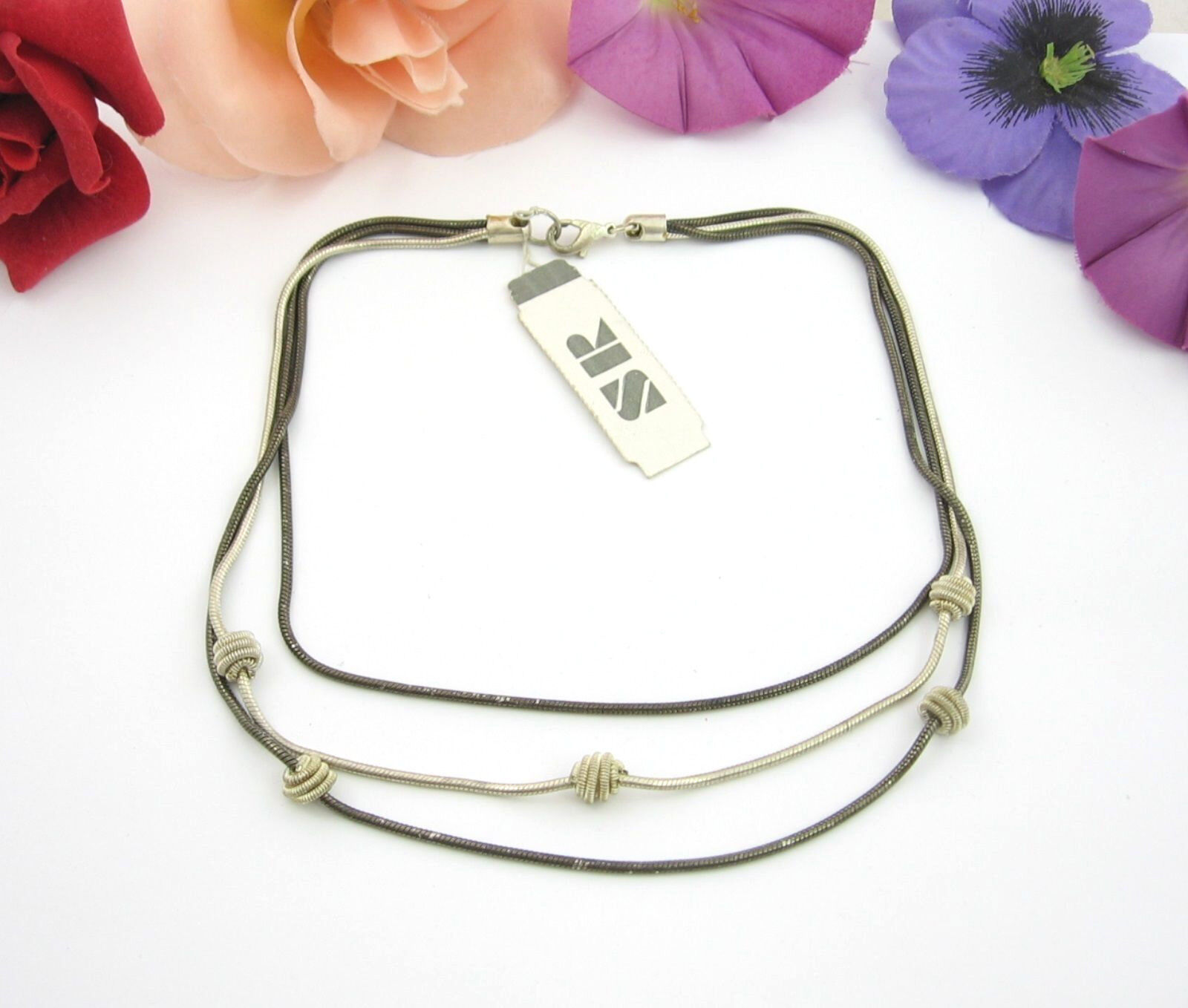Vintage TRIPLE Strand TWO Tone KNOTTED NECKLACE Vintage Gunmetal Silvertone w/ TAG 15"