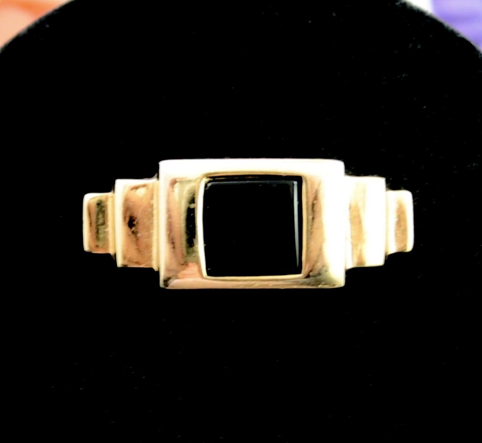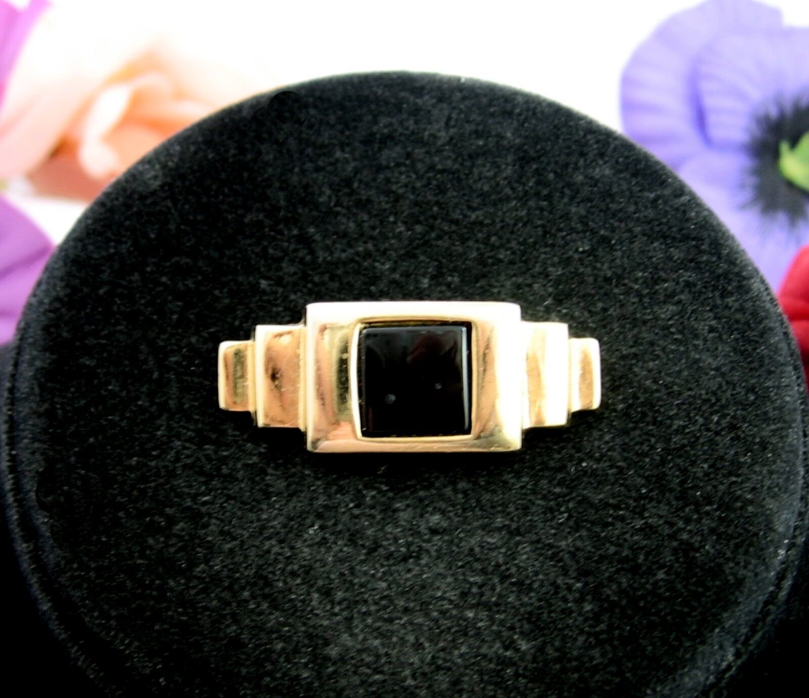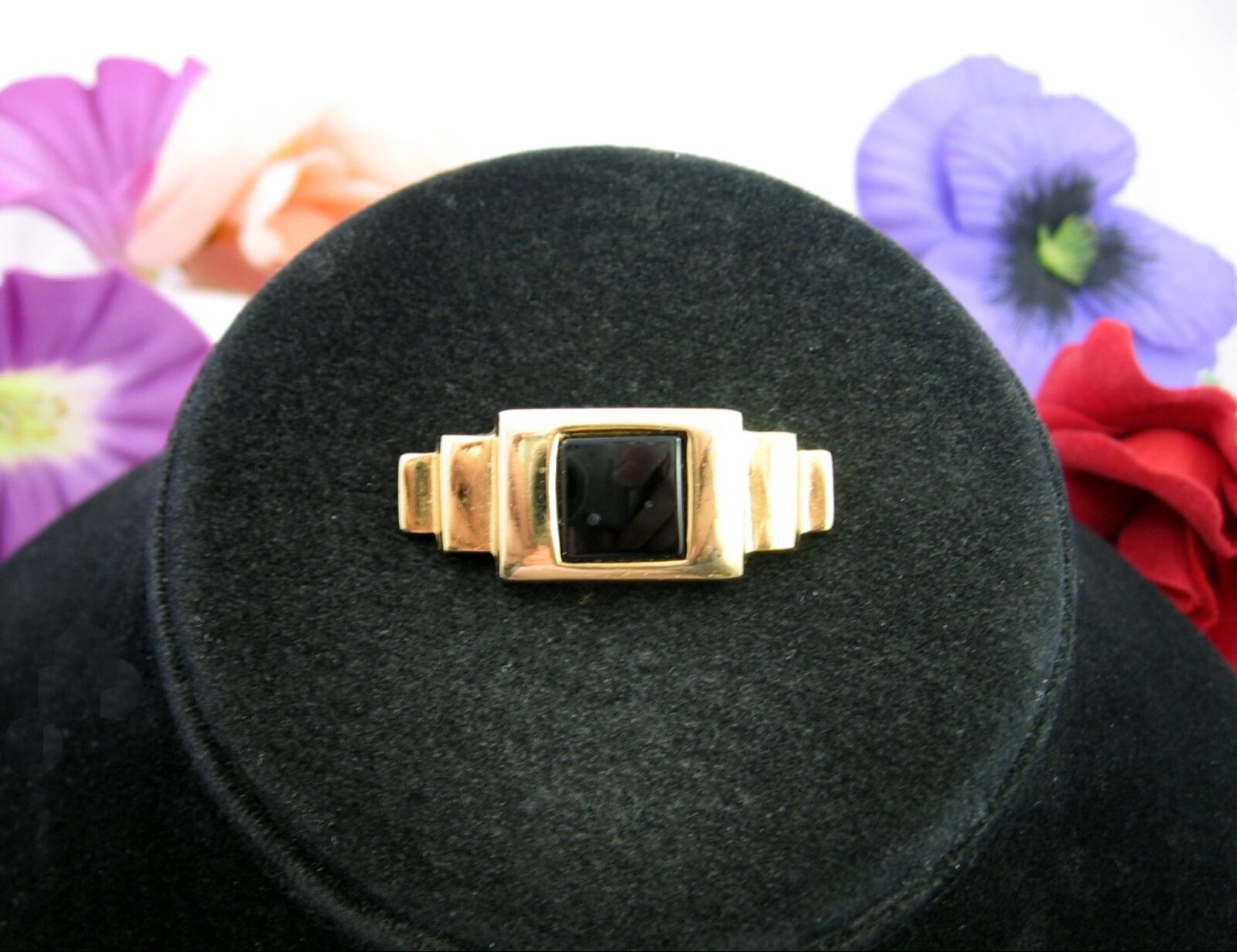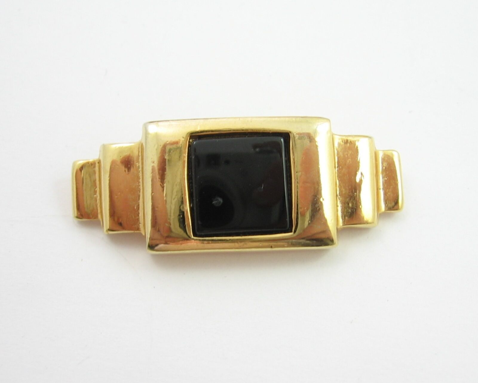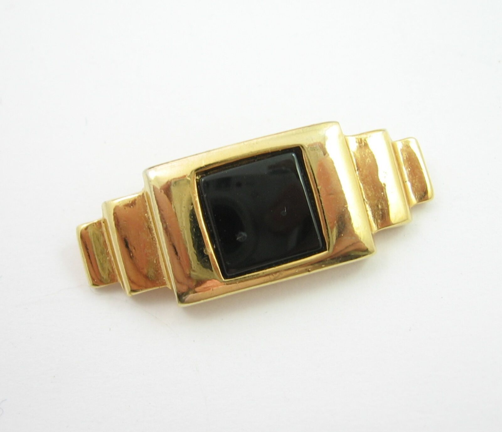 In a goldtone, this vintage BROOCH has a square of BLACK ENAMEL in the center and an Art Deco Feel!