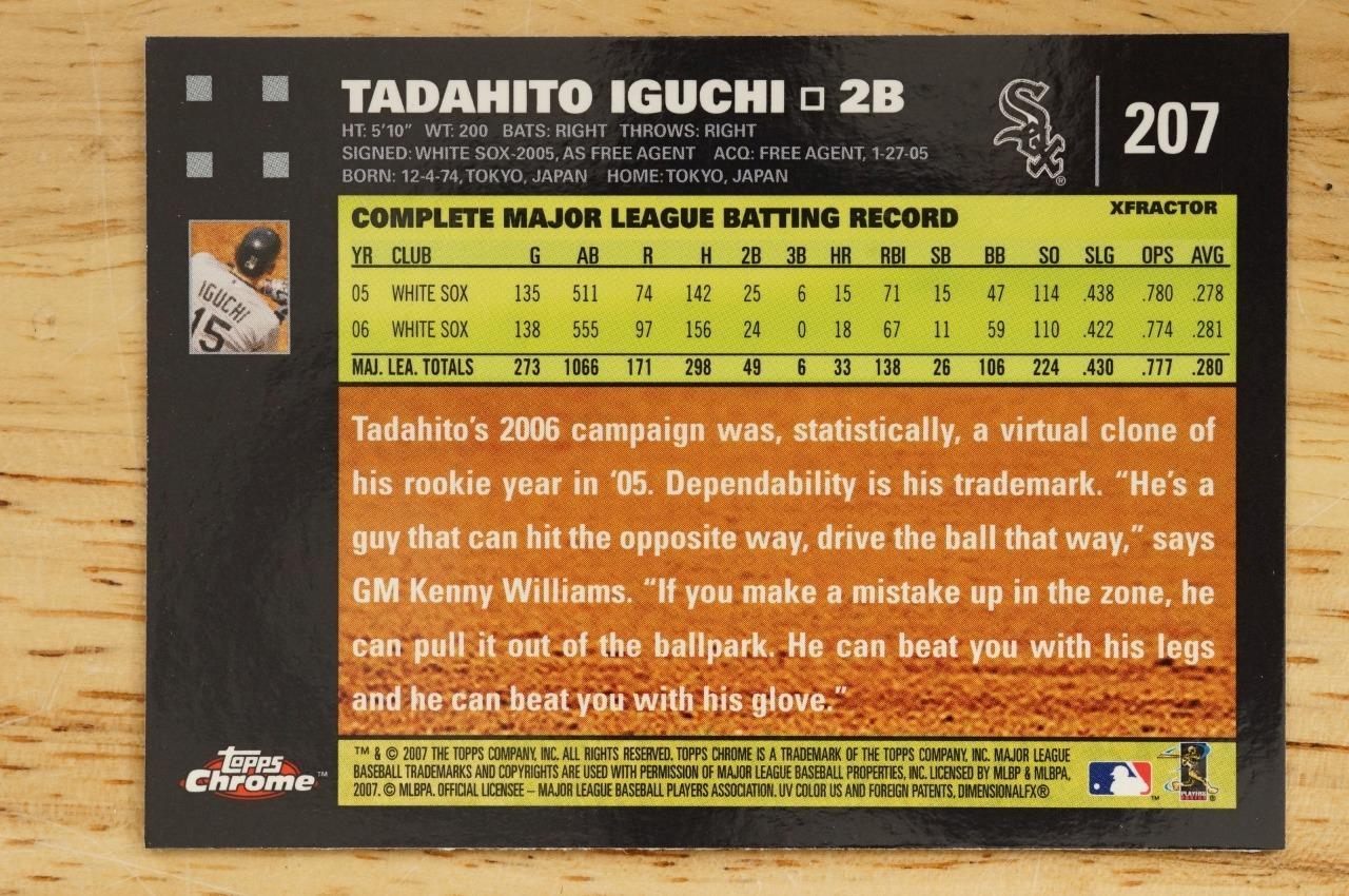 2007 Topps Chrome Baseball Card #207 Xfractor Tadahito Iguchi Chicago White Sox