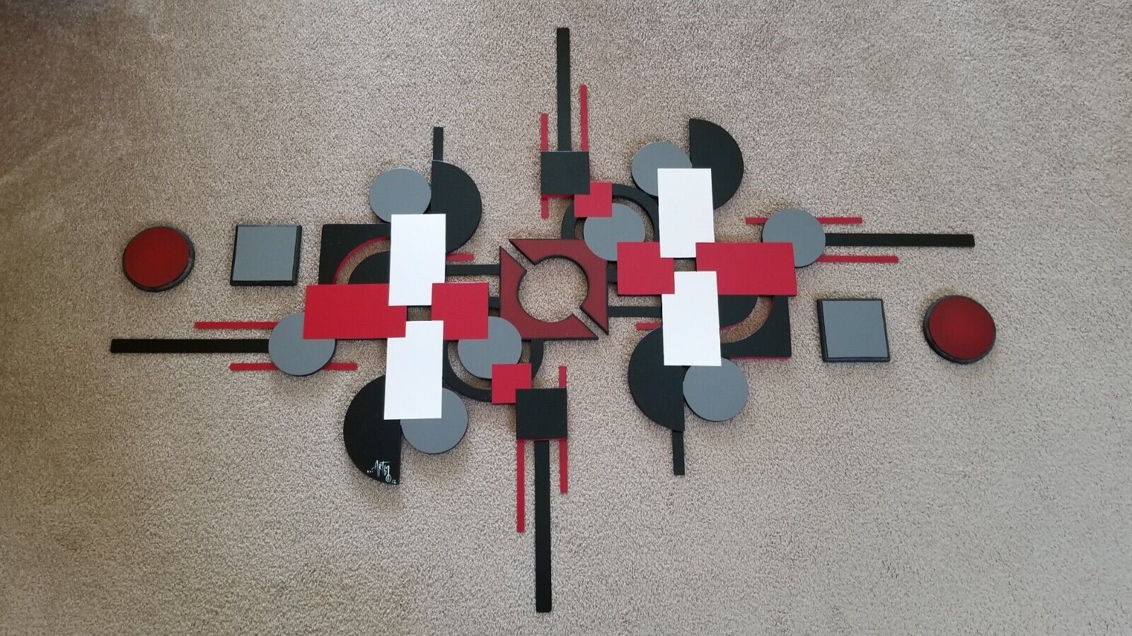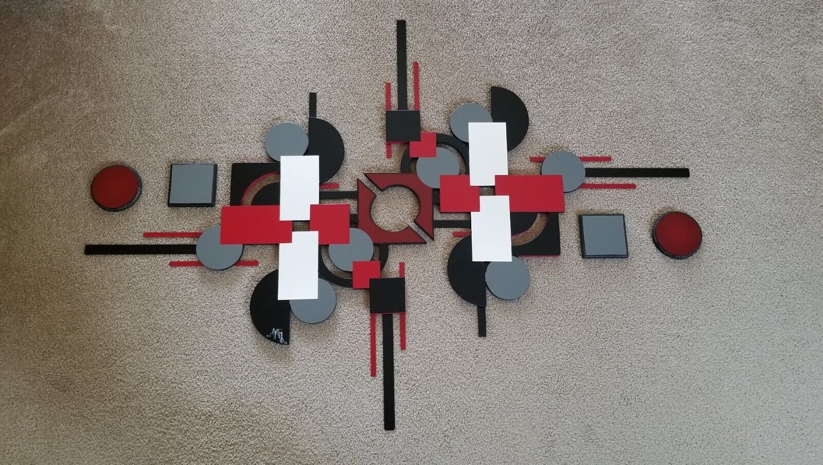 Contemporary Red Black Gray Modern Wood Metal Square Wall Sculpture 62x44 Art69