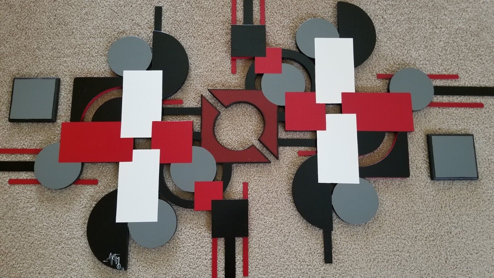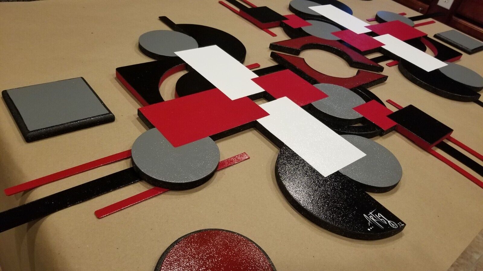 Contemporary Red Black Gray Modern Wood and similar items