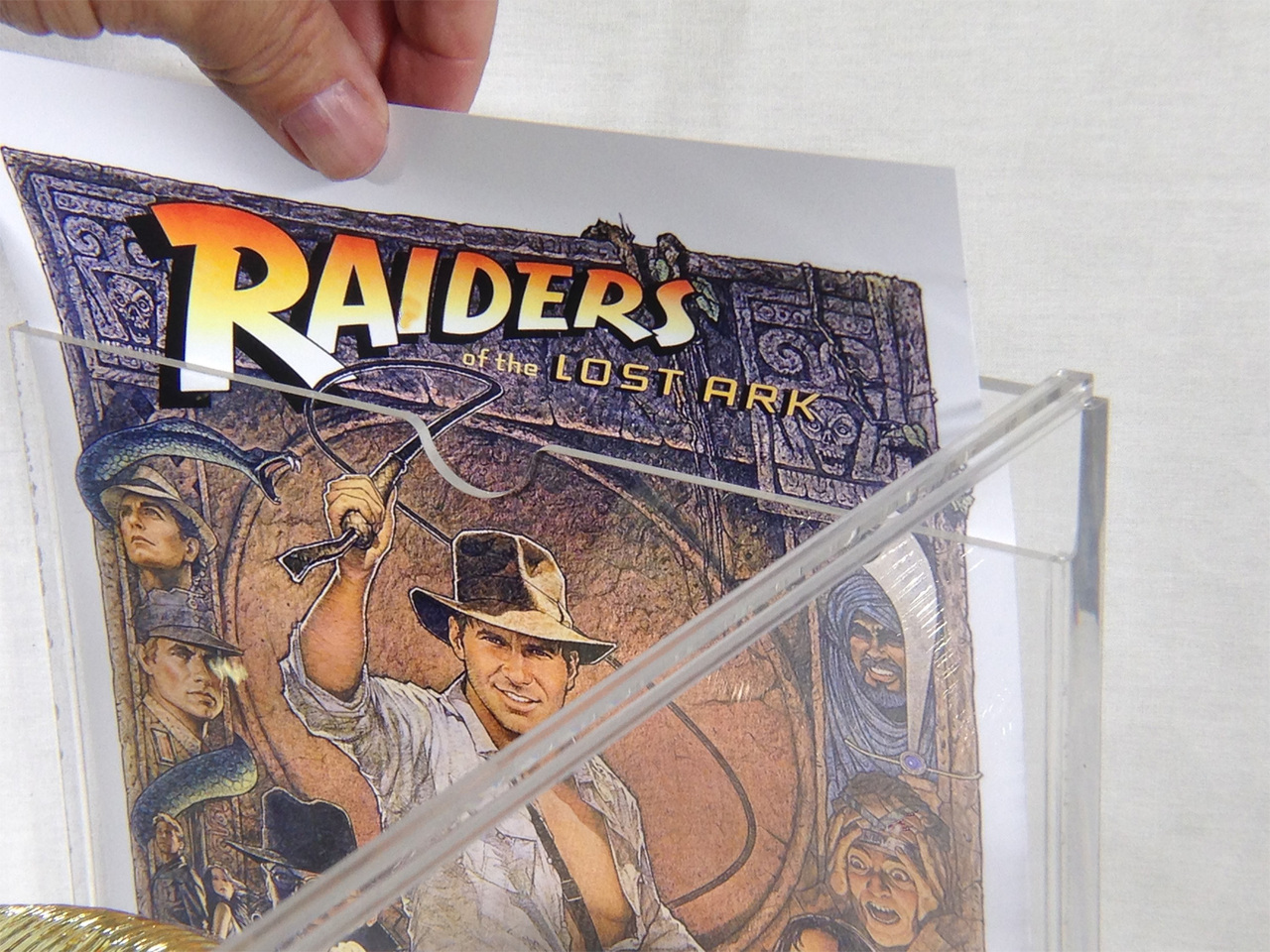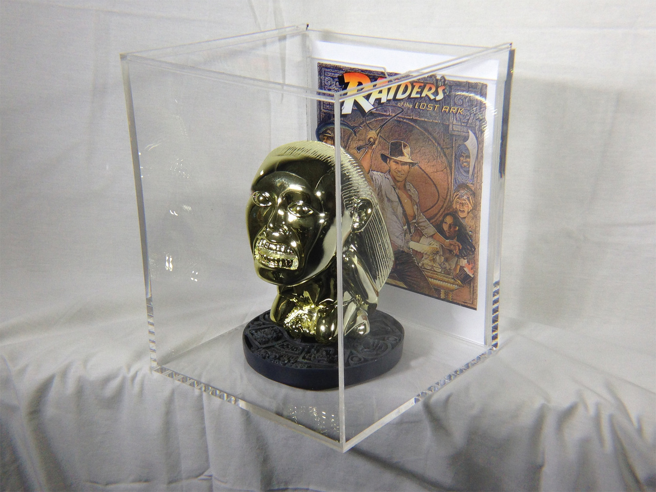 The Idol also comes with a Display Case that is made out of High Quality Acrylic and measures: 11" Inches High X 9.5" Inches Wide X 9.5" inches Deep. Case has a nice slide lid on top that slides from back to front. Also inside case on Back Wall is a Secret Slot. This Slot is made to hold Photograph type paper. You will be provided a High Quality Full Color Print of Poster Art from Film, as shown in pictures.