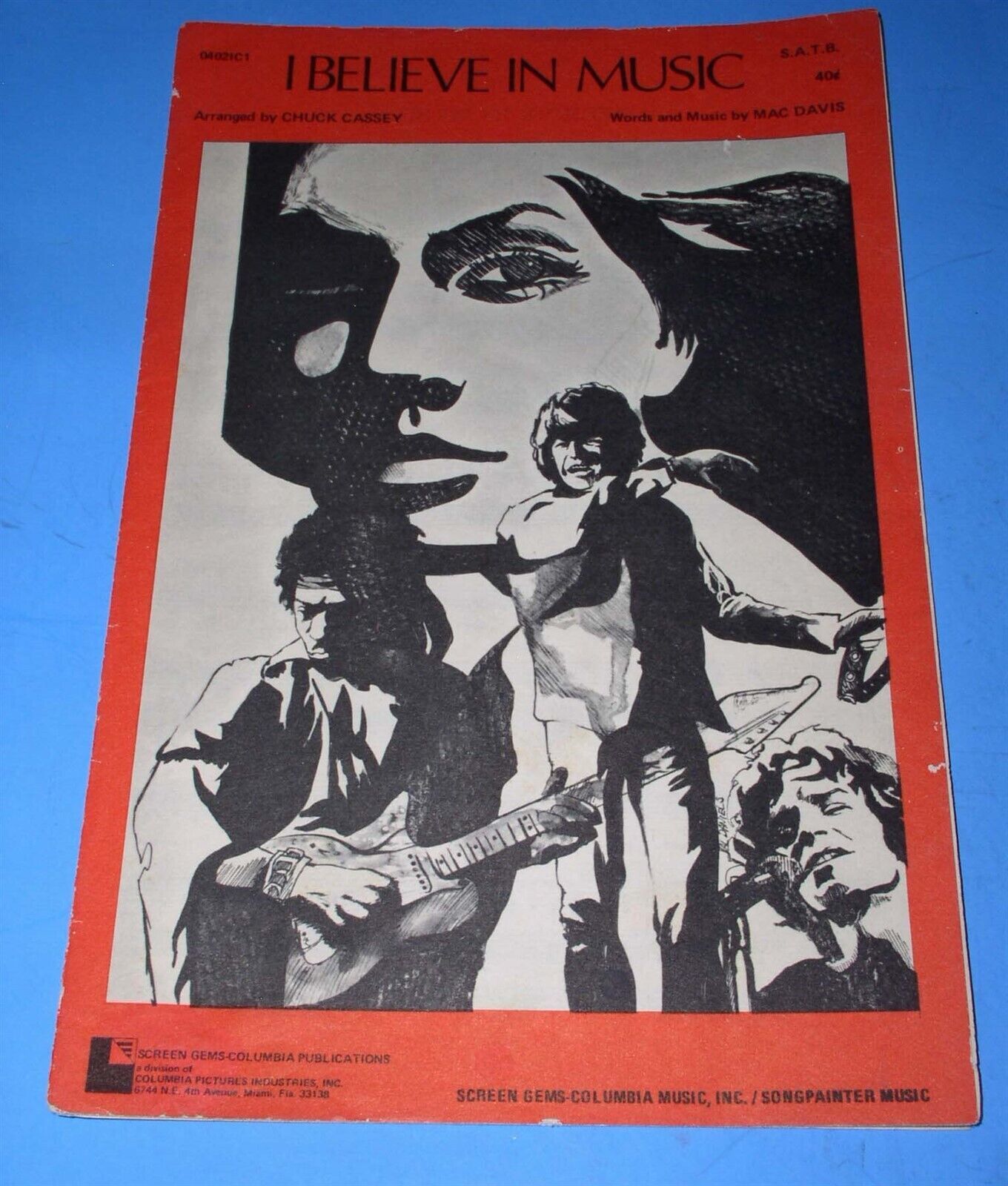 This is a vintage sheet music for the Mac Davis song, "I Believe In Music". Dated 1972 Screen Gems.