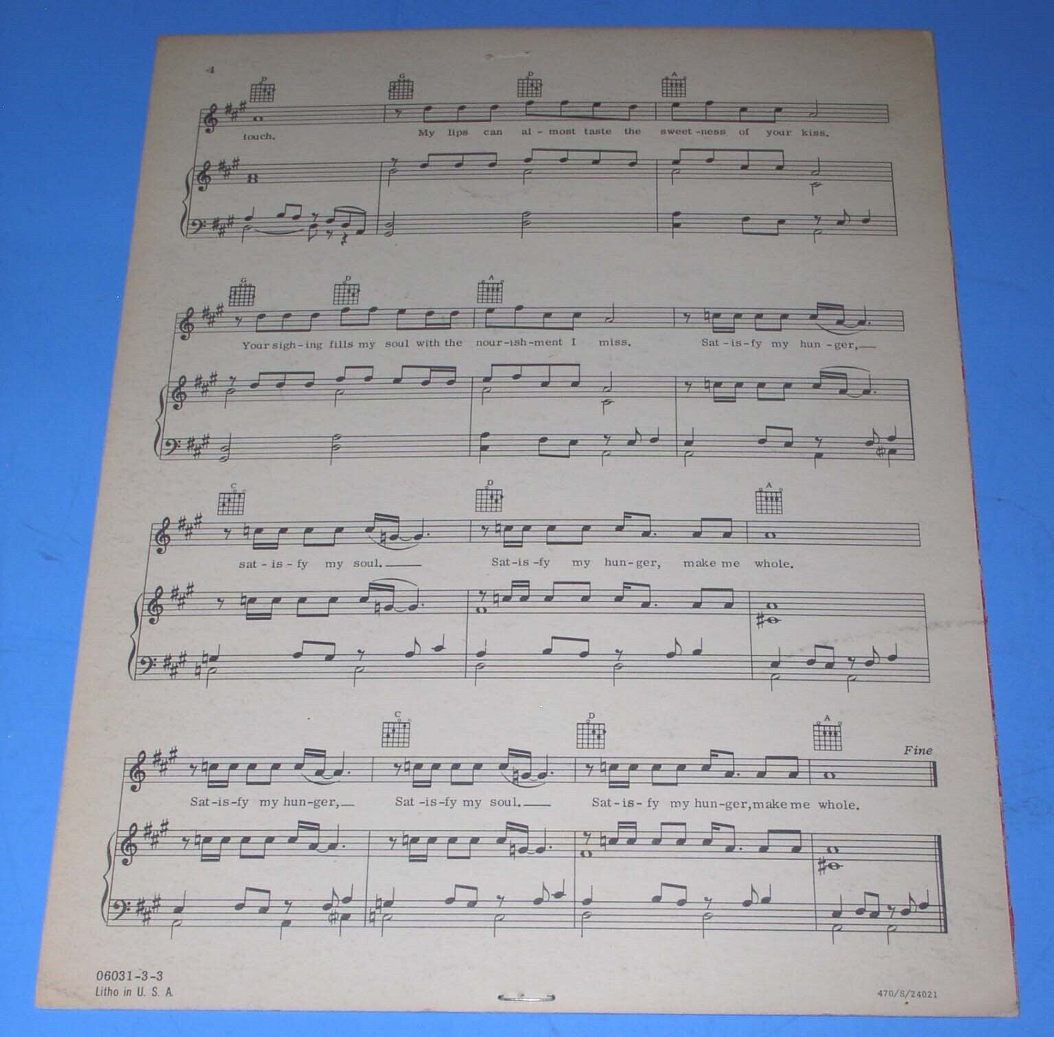 This is the original, vintage sheet music for the Peaches And Herb song, "Satisfy My Hunger". Dated 1970 M.R.C. Music, Inc.