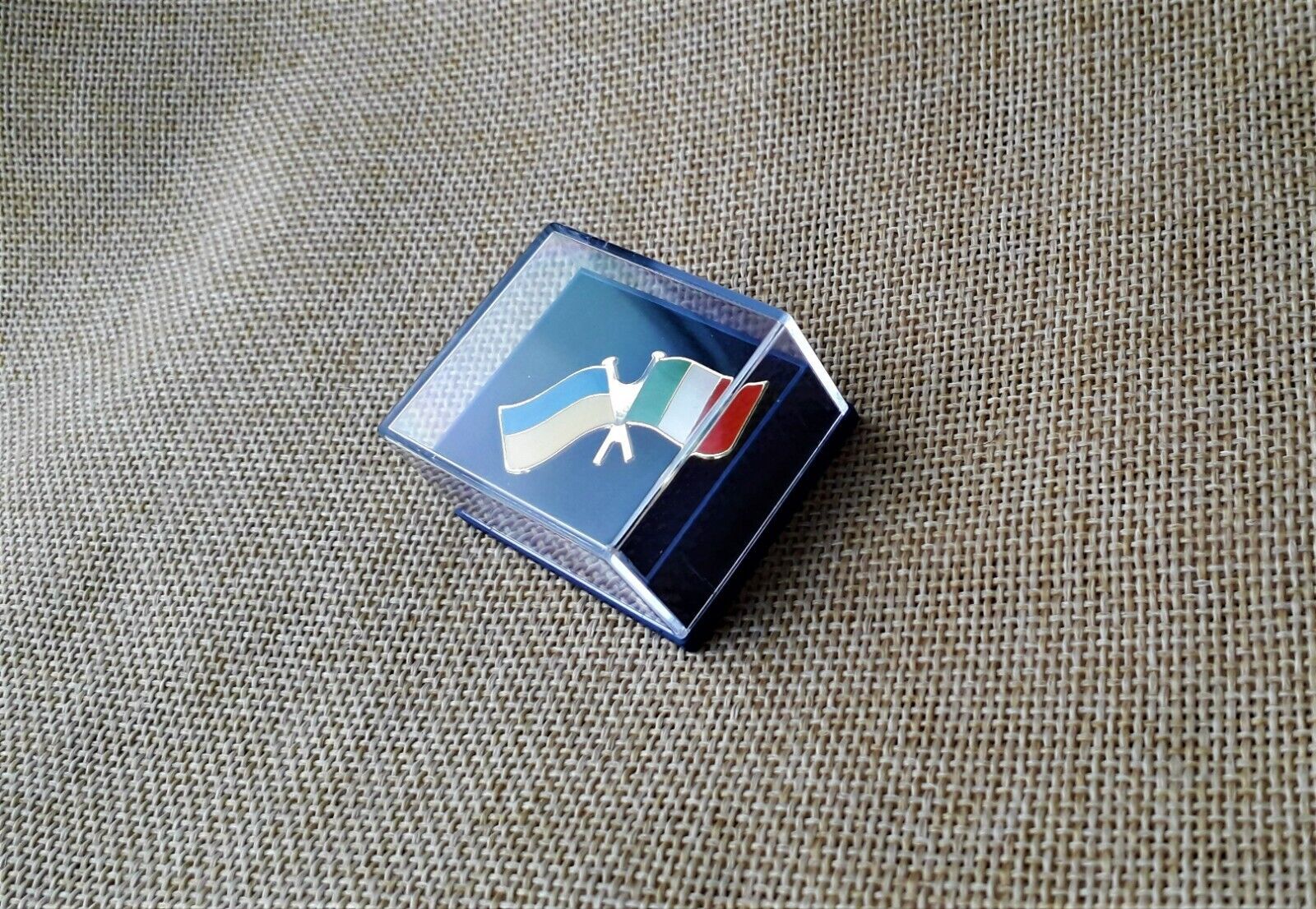 Ukrainian Italian Flag Ukraine Italy lapel Pin Gold Christmas Present Gift Box