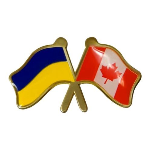 Lapel Pin Ukrainian & Canadian flag Metal badge Canada Gift Present Gold 1"