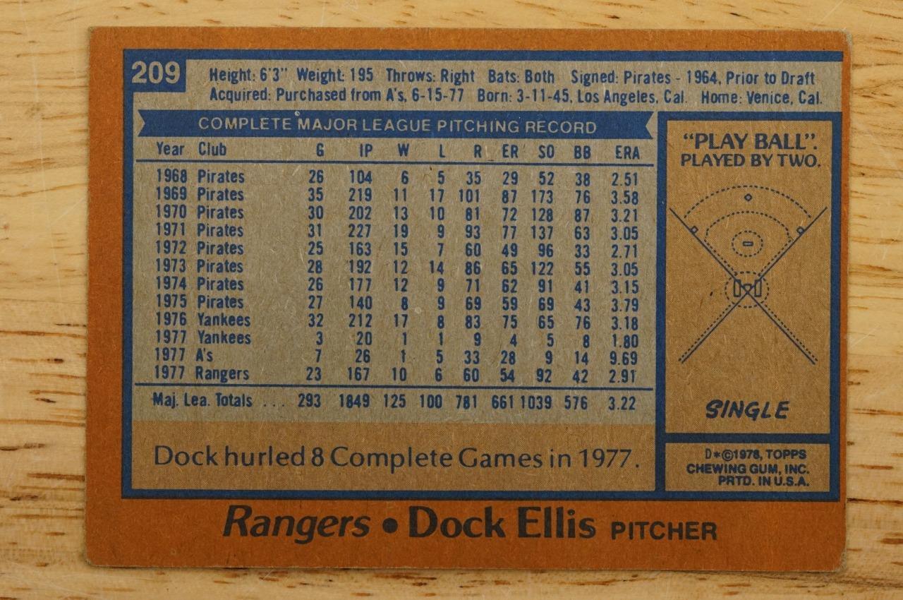 1978 Topps Baseball Card #209 Dock Ellis Texas Rangers
