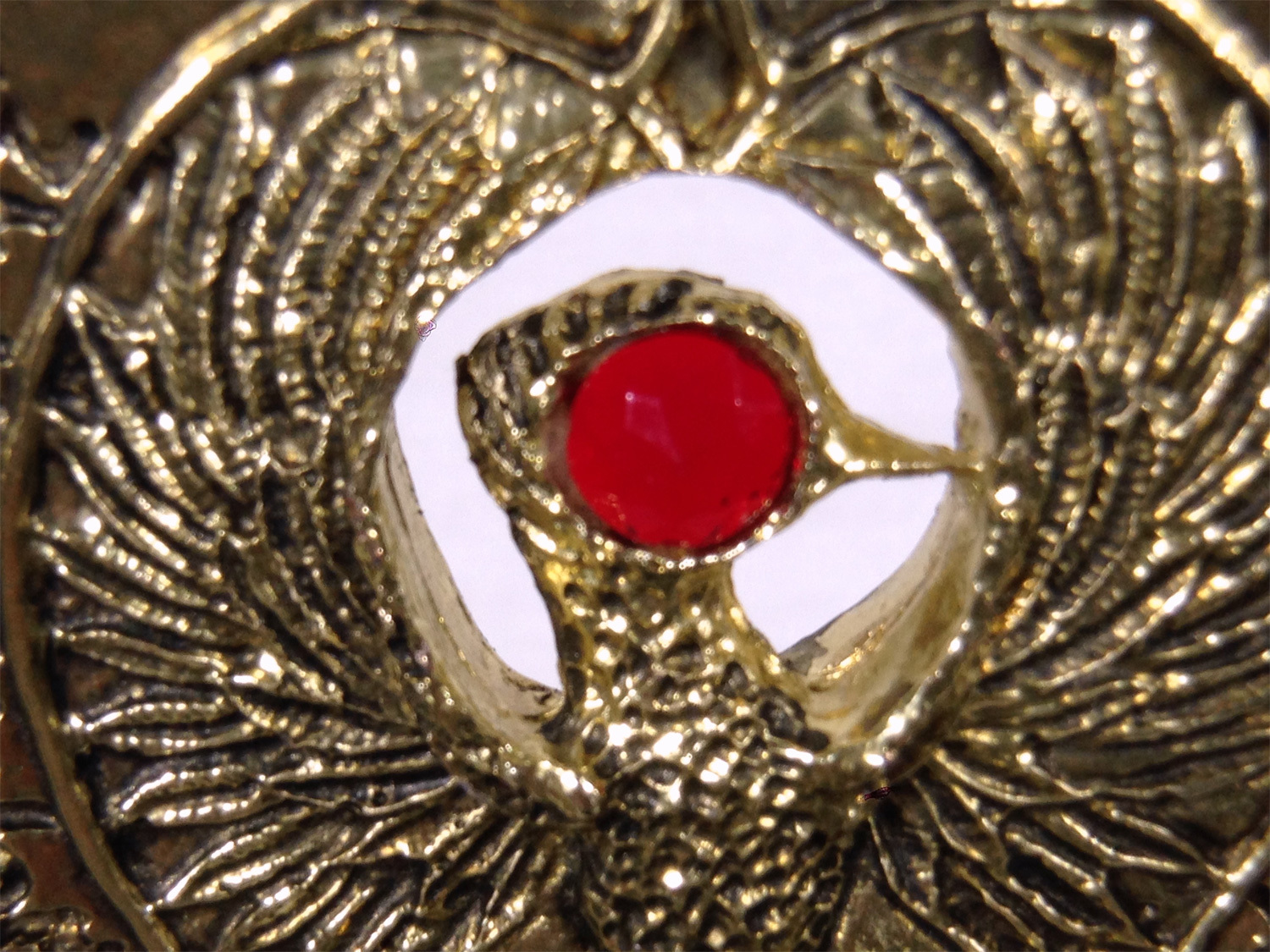 Indiana Jones, Staff of RA Headpiece, Antique Gold, Solid Metal, Red Jewels