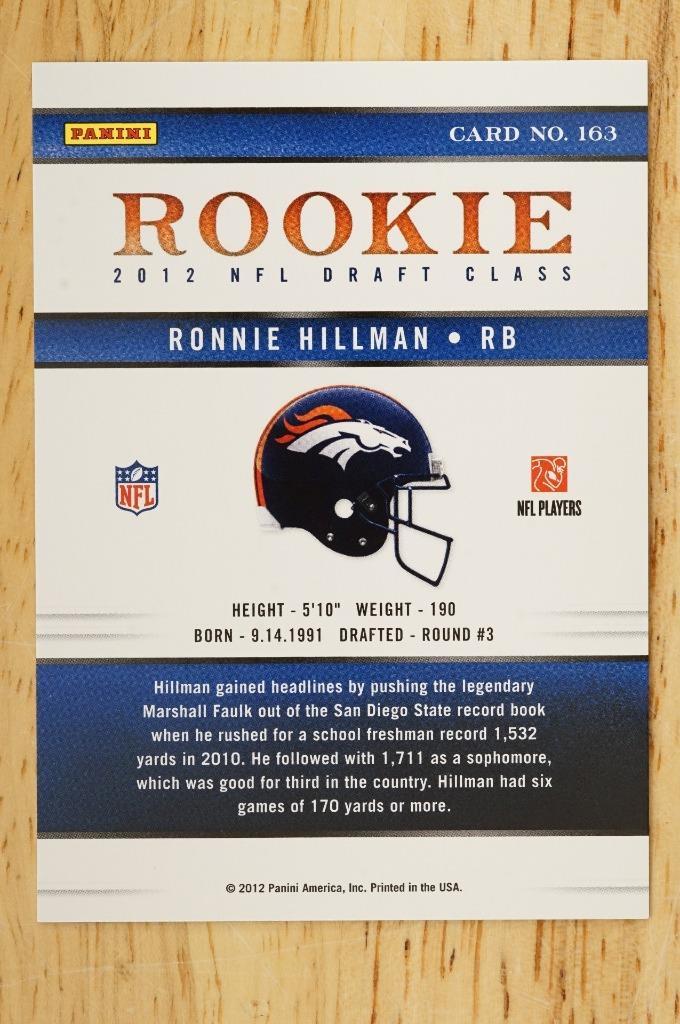 2012 Elite Football Card #163 Ronnie Hillman RC 553/799 Rookie Denver Broncos