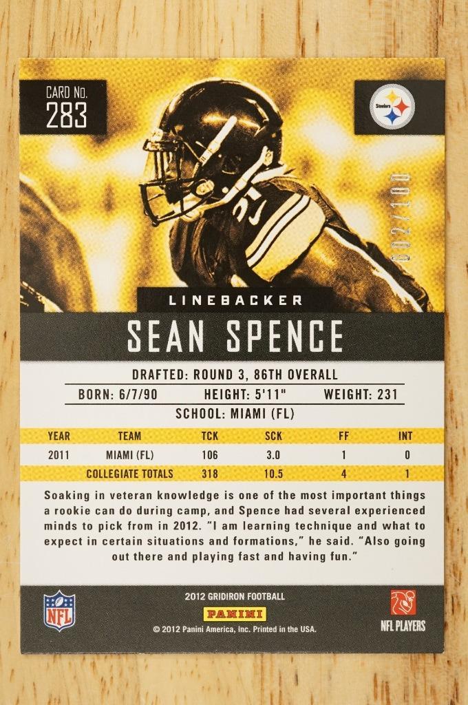 2012 Panini Gridiron Rookie Gold Xs 2/100 Sean Spence Steelers Football Card