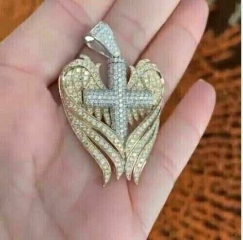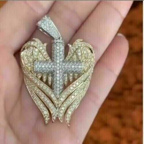 2.80Ct Ronda CZ Moissanite Cross Colgante de alas antiguas Chapado en oro...