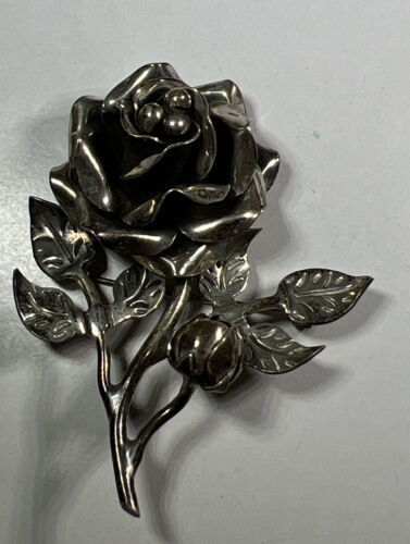 Vintage 925 Mexico TC-160 Sterling Silver Rose Pin Brooch Taxco Signed